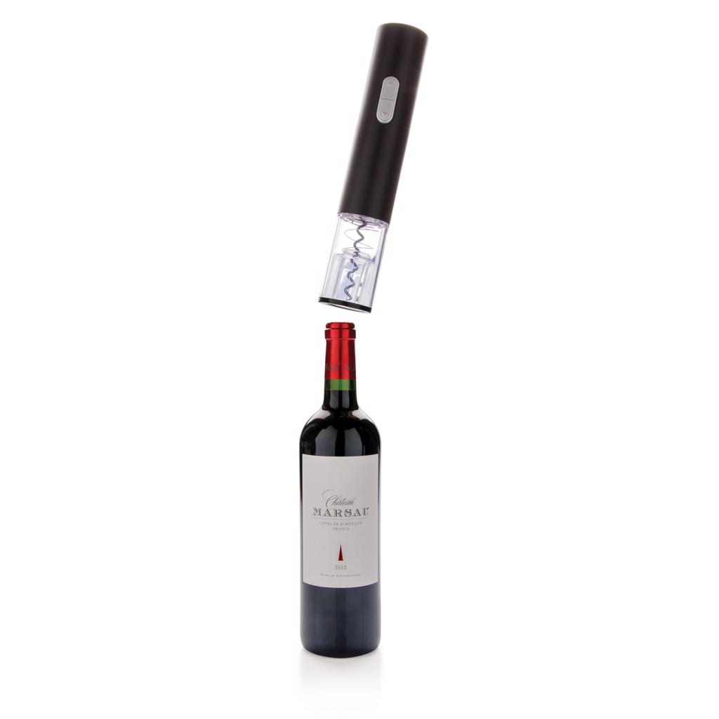 Dieser batteriebetriebener elektronischer Weinöffner entkorkt eine Weinflasche durch einfaches Knopfdrücken. Inklusive 4 AA Batterien. Verpackt in Geschenkbox.