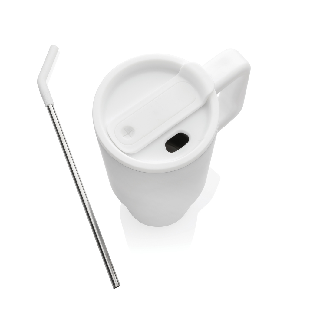 Erleben Sie, wie geräumig und doch bequem tragbar unser großzügig bemessener Becher ist - nicht zu groß, nicht zu klein. Dank des schlanken Bodens passt er perfekt in die meisten Getränkehalter und sorgt dafür, dass Sie erfrischt bleiben, egal ob Sie einen langen Meeting-Tag durchstehen oder eine Reise in die Stadt antreten. Dieser 900ml-Becher ist aus langlebigem, recyceltem Edelstahl gefertigt. Doppelwandig & vakuumisoliert. Er wird mit einem Schwappschutz-Deckel, einem Trinkhalm & einer Trinkhalmspitze aus Silikon geliefert. Er eignet sich sowohl für heiße als auch für kalte Getränke. Für eine optimale Pflege empfehlen wir Handwäsche. Die RCS-Zertifizierung gewährleistet eine vollständig zertifizierte Lieferkette für die recycelten Materialien. Gesamter recycelter Inhalt: 70%, bezogen auf das Gesamtgewicht des Artikels. BPA-frei.
