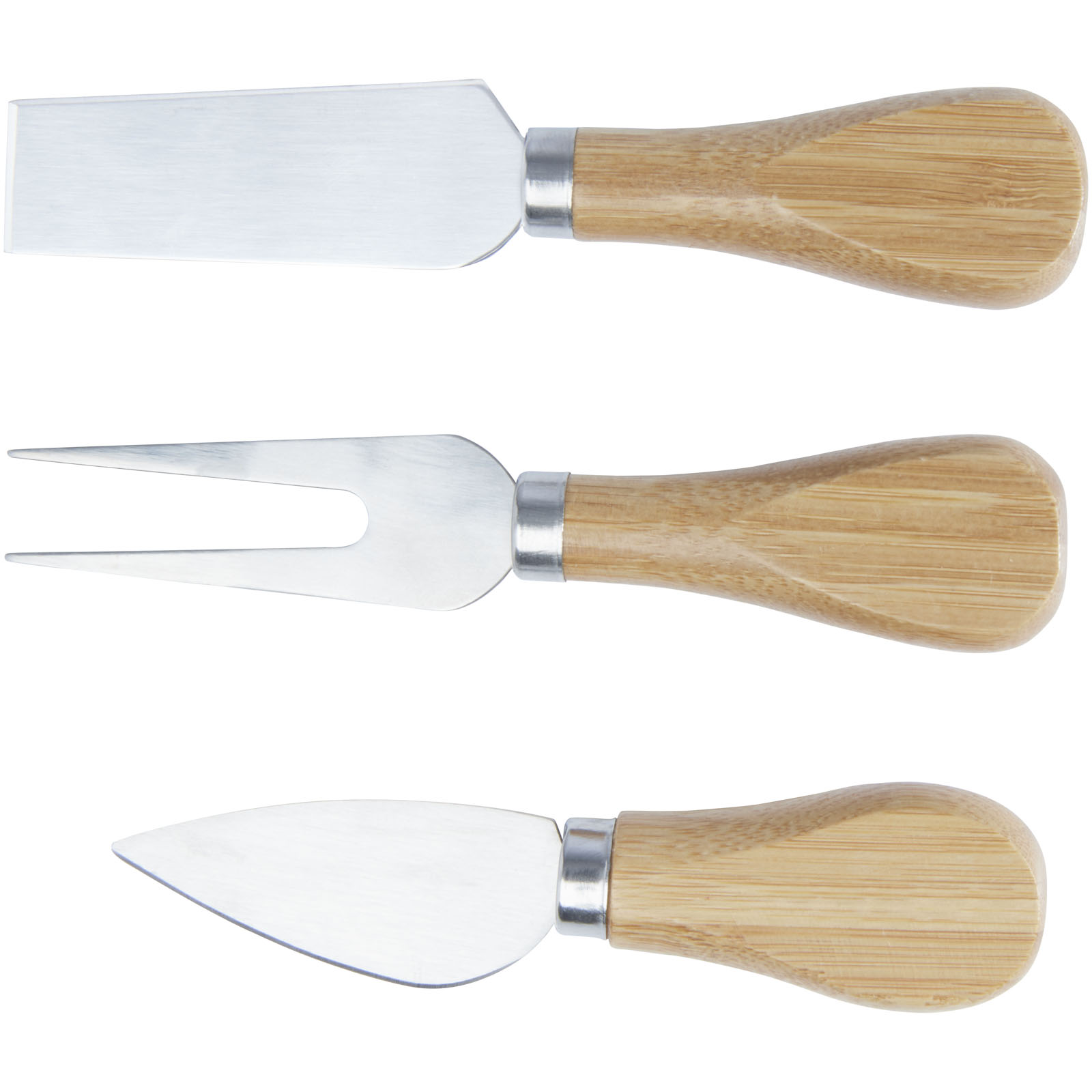 Eine Käseplatte ist nach einem guten Essen immer beliebt, und mit diesem Set haben Sie alles, was Sie brauchen. Das Set besteht aus einem Käsebrett aus Bambus (22,8 x 18 x 1 cm), einem Standard-Käsemesser (12,5 x 2,5 cm), einem rechteckigen Käsemesser (12,5 x 2,7 cm) und einer Käsegabel (13,5 x 2,4 cm). Der verwendete Bambus wird nach nachhaltigen Normen beschafft und produziert.