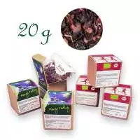 Zutaten: Apfelstücke, Hibiskusblüten, Pfefferminze (19%), Orangenecken, Aroma, Erdbeerscheiben (2%), Säuerungsmittel: Weinsäure.