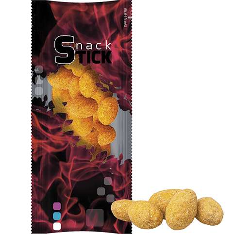 Snack Stick aus weißer Folie oder transparenter Folie. Werbeanbringung als Direktdruck in 4c individuell bedruckbar. Zutaten Erdnüsse Barbecue: Erdnüsse 56%, Kartoffelstärke, Palmöl, Barbecue Gewürzmischung (Salz, Kartoffelstärke, Geschmacksverstärker: Mononatriumglutamat, Dinatrium-5'-Ribonukleotiden, Dextrose, Zucker, Raucharoma, Hefeextrakt, Aroma, Knoblauchpulver, Trennmittel Siliciumdioxid, RapsölFarbe, Paprikaextrakt, Säureregulator - Milchsäure, Antioxidationsmittel: tocopherolhaltigeExtrakte, Kurkuma-Extrakt), modifizierte Stärke, Zucker, Jodsalz, Backtriebmittel (Natriumcarbonate), Farbstoff: Ammoniak-Zuckerkulör Kann Spuren von anderen Nüssen enthalten.