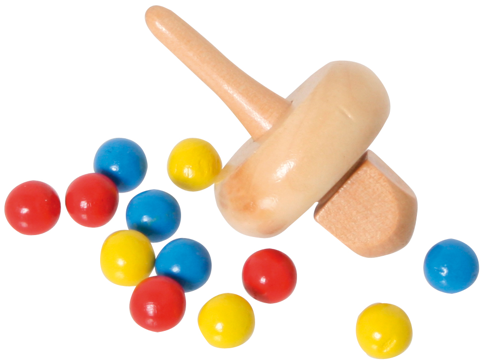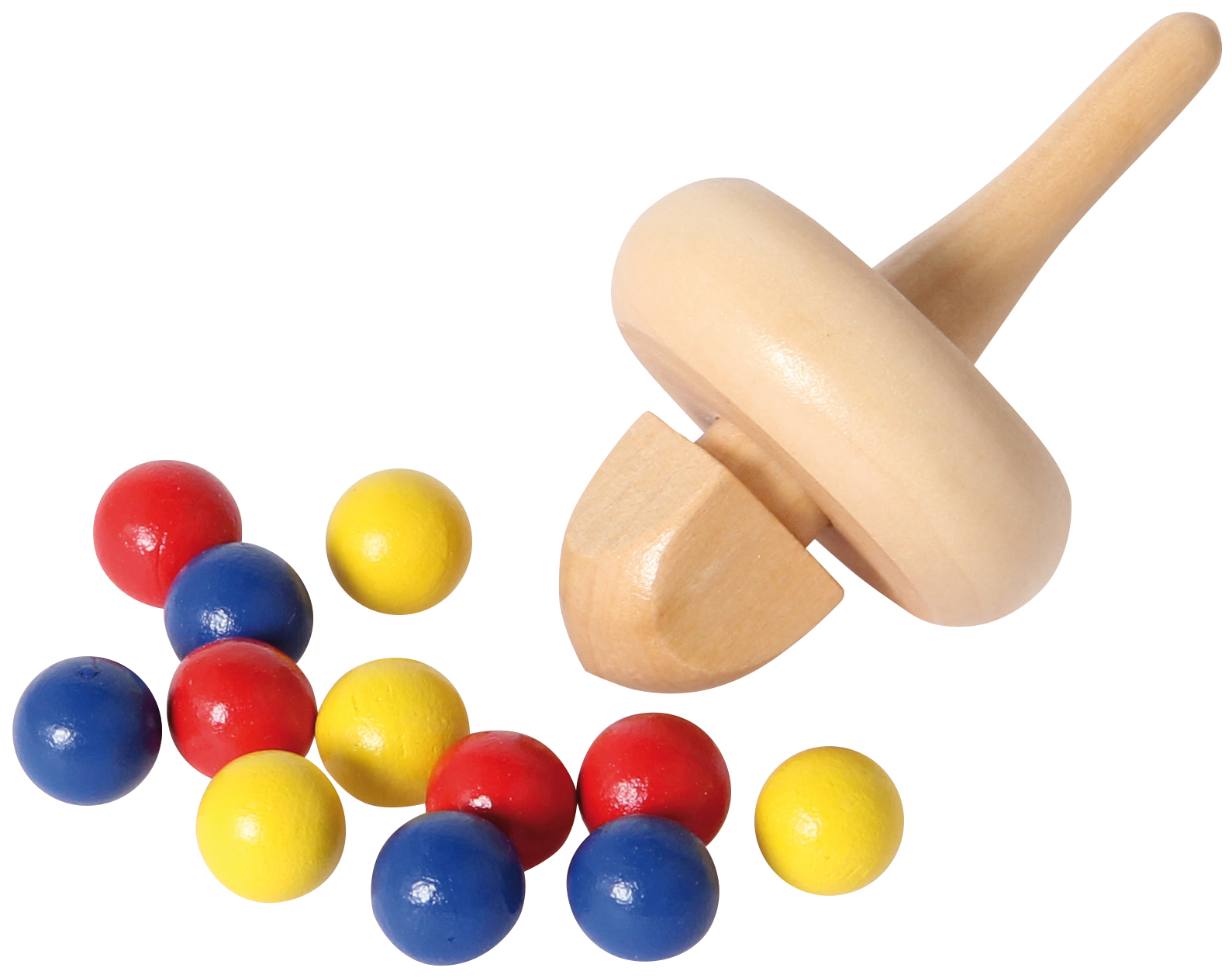 Zwölf Holzkugeln und ein zerlegbarer Kreisel aus Holz für das Super-Roulette, Art.-Nr. 100276 und das Super-Roulette klein, Art.-Nr. 101731.