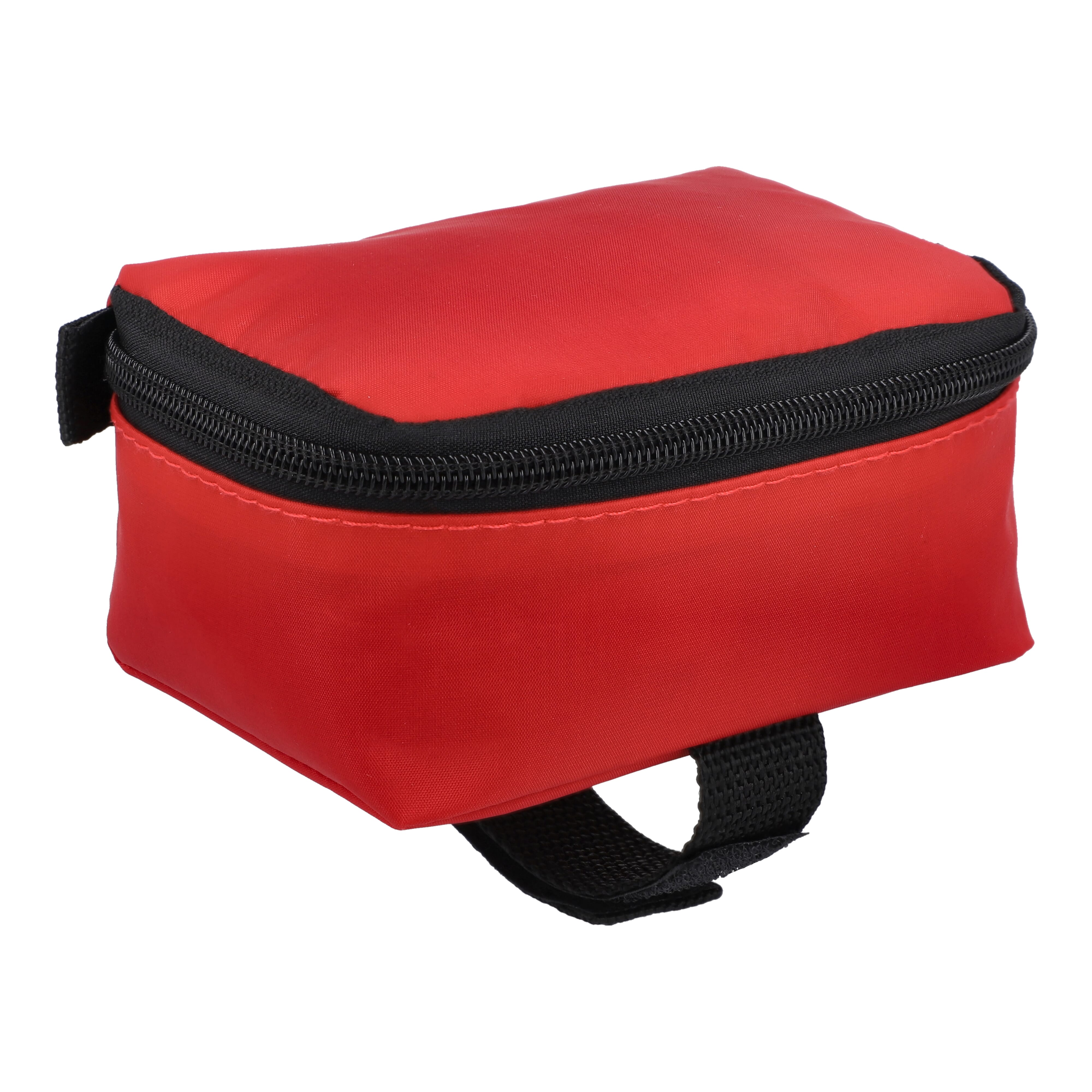 Dieses Erste-Hilfe-Set wird in einer Nylontasche mit Klettverschlüssen an der Unterseite geliefert, sodass es am Fahrradlenker befestigt oder am Handgelenk getragen werden kann. Es entspricht den europäischen Normen und ist ideal für Radtouren, Wanderungen oder andere Outdoor-Aktivitäten. Das kompakte und praktische Set enthält alles Notwendige zur Versorgung kleinerer Verletzungen und Verstauchungen. Inhalt: 1 × Dreieckstuch 90 × 90 × 127 cm, 2 × Alkoholtupfer, 1 × Packung mit 10 Sicherheitsnadeln, 1 × medizinisches Klebeband 1,25 cm × 4,5 m, 1 × Packung mit 5 Vlies-Schwämmen 5 × 5 cm, 4-lagig, 5 × Heftpflaster 72 × 19 mm, 1 × elastische Binde 7,5 × 450 cm, 2 × nicht haftende Kompressen 5 × 7,5 cm, 1 × kohäsive Binde 5 × 450 cm, 1 × Schere.