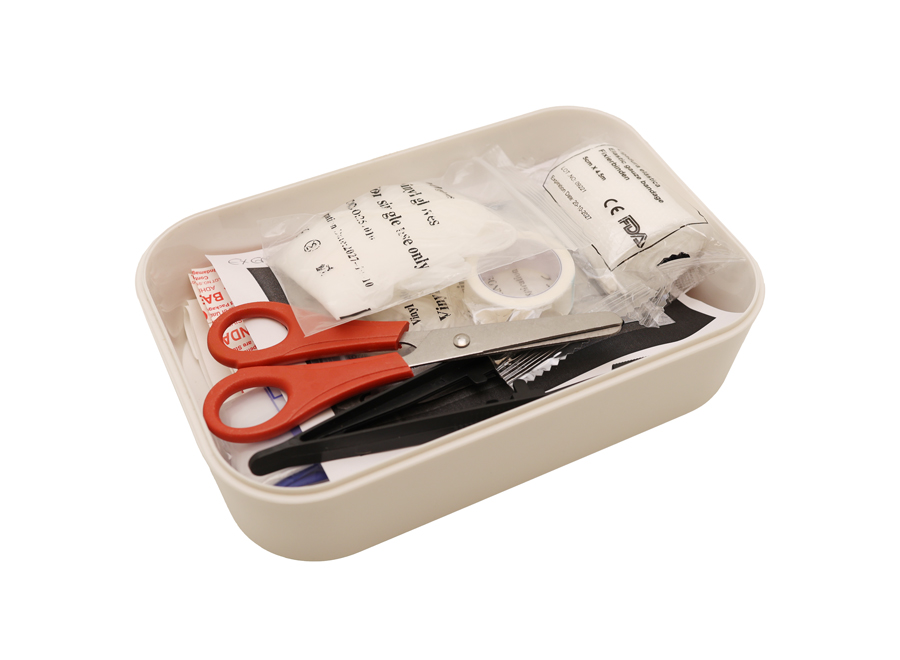 Polypropylenbehälter mit Bambusdeckel mit folgendem Inhalt: Schere, Kunststoffpinzette, Latexhandschuhe, 1 Mund-zu-Mund-Beatmungsgerät, Heftpflaster 1,25 cm x 5 m, Alkoholtücher, 10 Pflaster 4 x 1 cm, 10 Pflaster 7,6 x 2,5 cm, 2 'Schmetterlings'-Pflaster, 2 'H' Pflaster, 1 Gaze-Bandage 5 cm x 4,5 m, 2 sterilisierte Gaze-Pads 7,5 x 7,5 cm, 4 sterilisierte Gaze-Pads 5 x 5cm, 6 antiseptische Tücher, 4 Schmerzlinderungpads. Die Vorteile in Kürze: - Kompakte Größe mit den wichtigsten Produkten für Erste Hilfe. - Möglichkeit, weitere Produkte aus unserer Kollektion hinzuzufügen, um das Kit zu ergänzen ( Rettungsdecke, Multifunktionsmesser usw.) - Elegante Box, die auch als Aufbewahrungsbox oder sogar als Bento-Lunchbox verwendet werden kann ( entspricht den neuesten Lebensmittelstandards).
