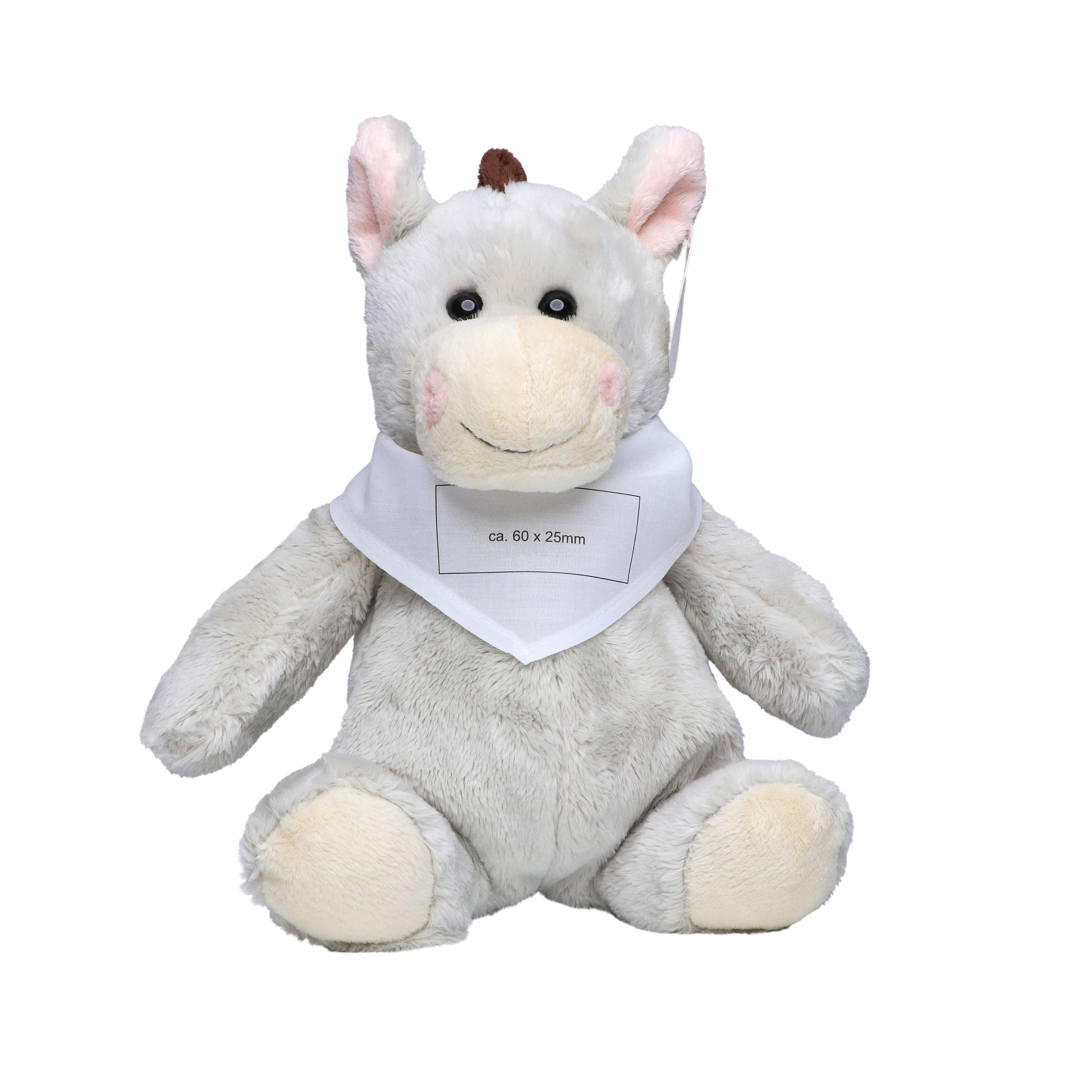 Unser schmuseweicher OEKO-TEX® Esel Pelle schafft mühelos sein Upgrade vom Nutztier zum nachhaltigen Kuschelhelden für Kinder und Erwachsene und bringt nachhaltige Werbung in Kinder- und Schlafzimmer. Für Logoanbringung oder Werbung existieren vielfältige Möglichkeiten, neben angenähten Domings oder einer Werbefahne auch bedruckbare Mode und Accessoires für Kuscheltiere wie T-Shirts, Dreieckstücher und Schals. Geprüft auf Schadstoffe (OEKO-TEX®, A08-0261 Hohenstein HTTI, oeko-tex. com / standard100).