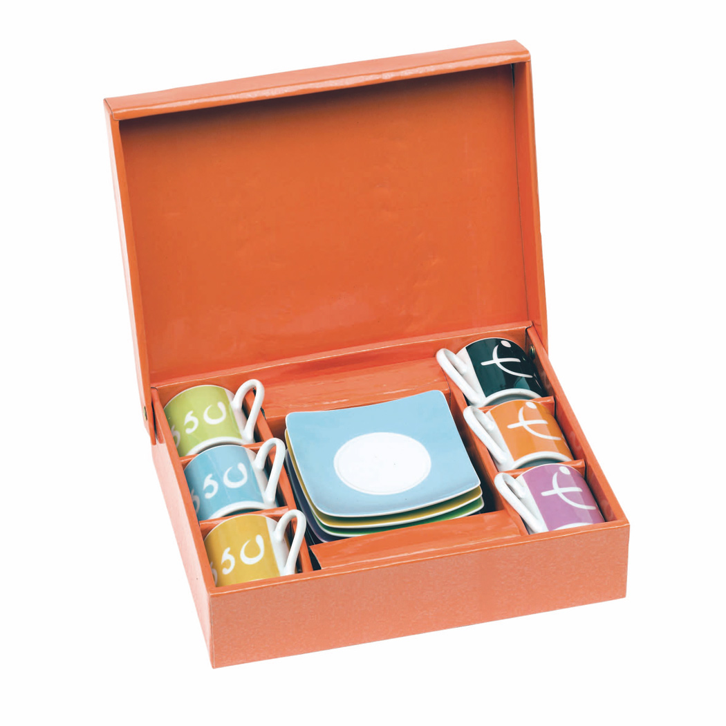 Espresso-Tassen-Set LA DOLCE VITA, 12-teilig: bestehend aus 6 Espresso-Tassen und 6 Untertassen aus Porzellan, Füllmenge ca. 60 ml, in Box
