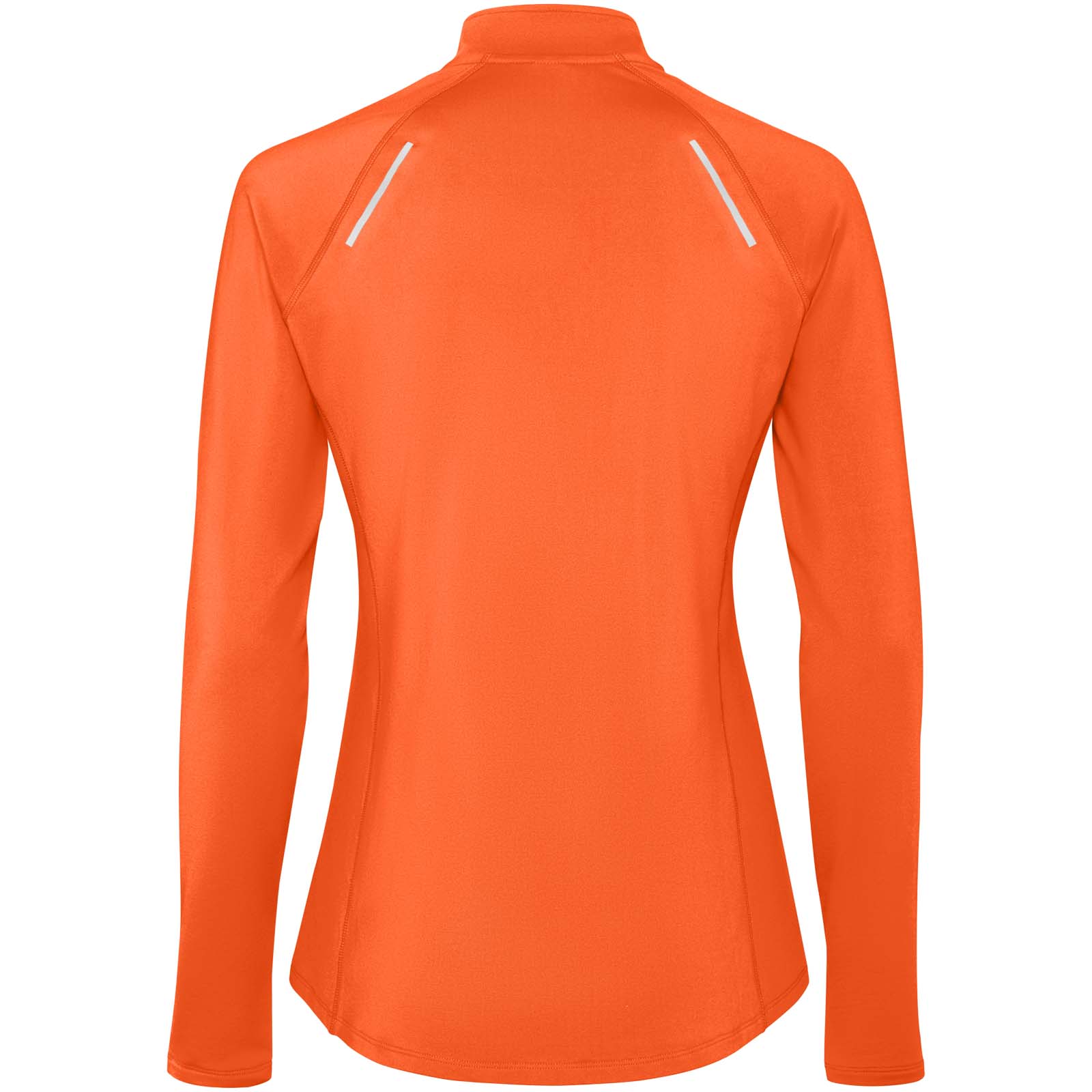 Langarm Funktions-Sweatshirt für Damen mit Raglanschnitt. Schlanke Passform. Kragen mit halbem Reißverschluss und reflektierenden Details. Verstärkte Nahtabdeckungen. Ärmelbündchen mit Daumenöffnung. Reflektierende Details am Rücken. Rückensaum etwas länger als der Frontsaum. Warmes gebürstetes Innenmaterial.