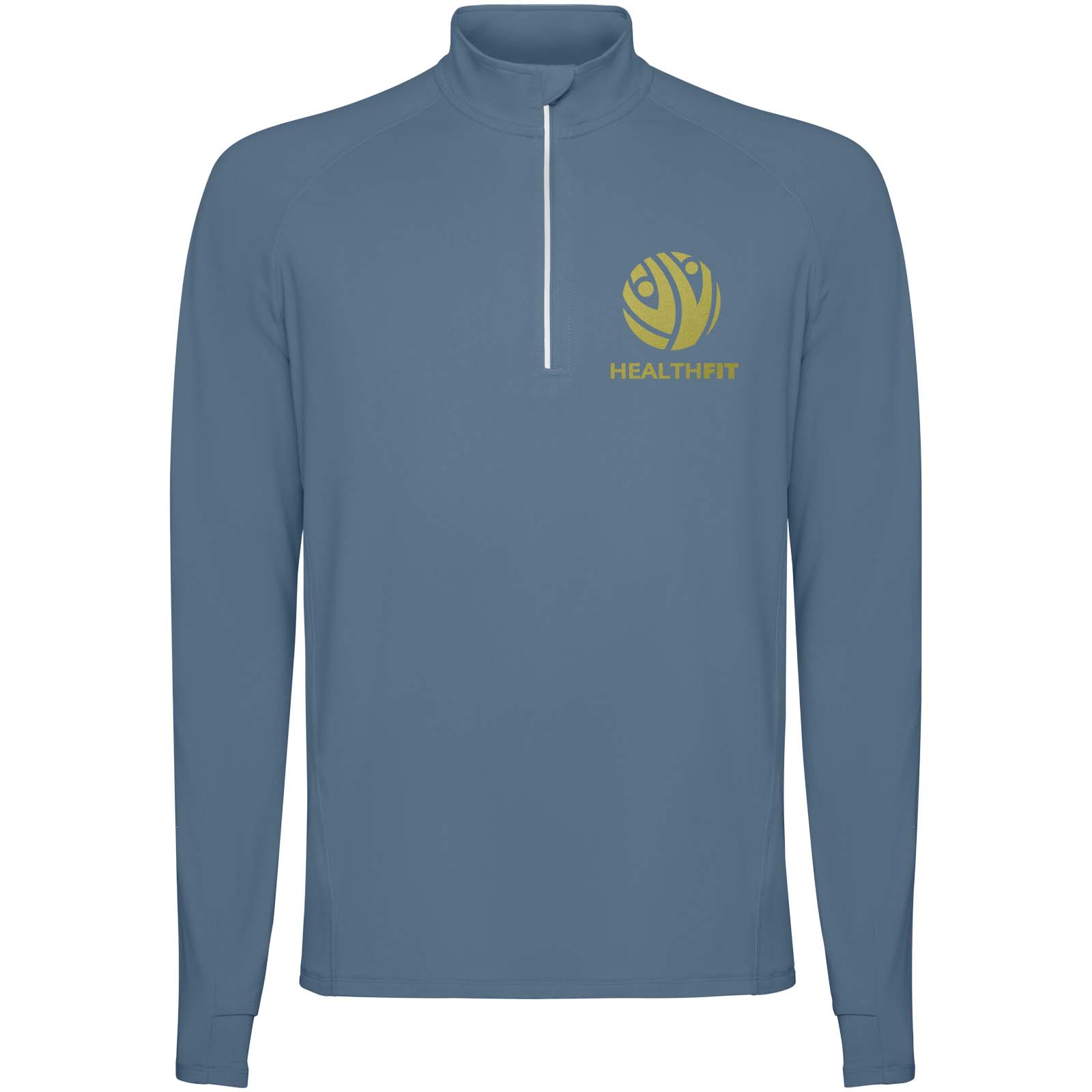 Langarm Funktions-Sweatshirt für Herren mit Raglanschnitt. Kragen mit halbem Reißverschluss und reflektierenden Details. Verstärkte Nahtabdeckungen. Ärmelbündchen mit Daumenöffnung. Reflektierende Details am Rücken. Rückensaum etwas länger als der Frontsaum. Warmes gebürstetes Innenmaterial.