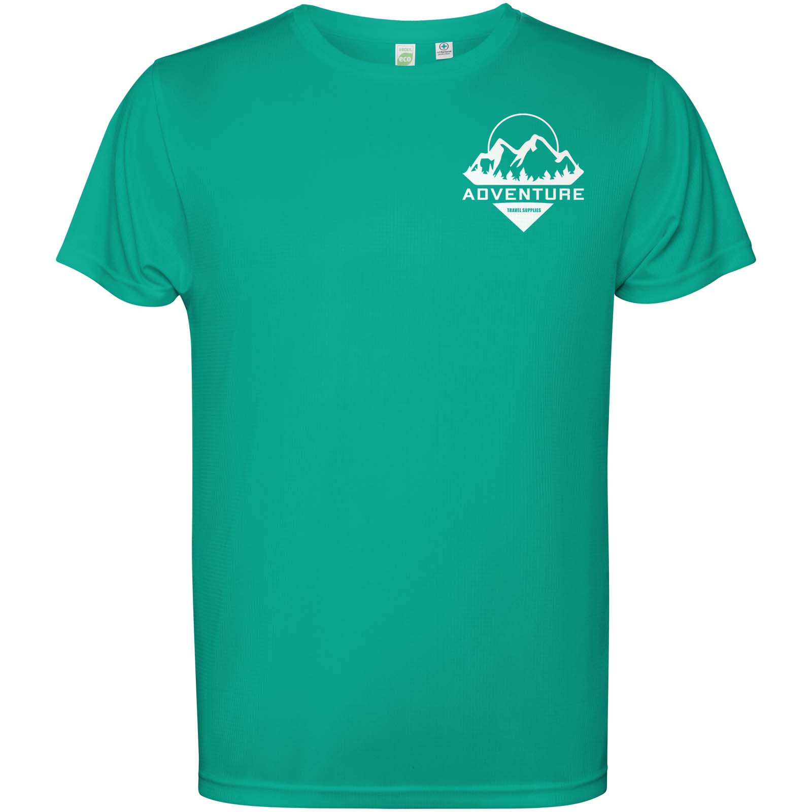 Funktions - T-Shirt für Herren. Kragen mit passenden Nähten. Rückensaum etwas länger als der Frontsaum. Seitennähte nach vorne versetzt.