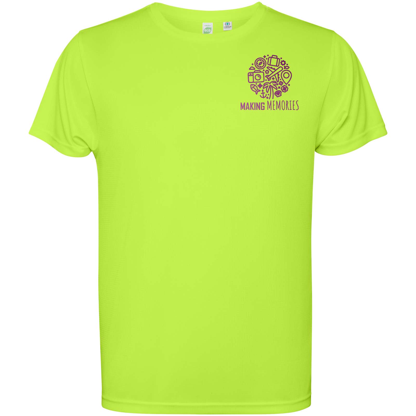 Funktions - T-Shirt für Kinder. Kragen mit passenden Nähten. Rückensaum etwas länger als der Frontsaum. Seitennähte nach vorne versetzt.