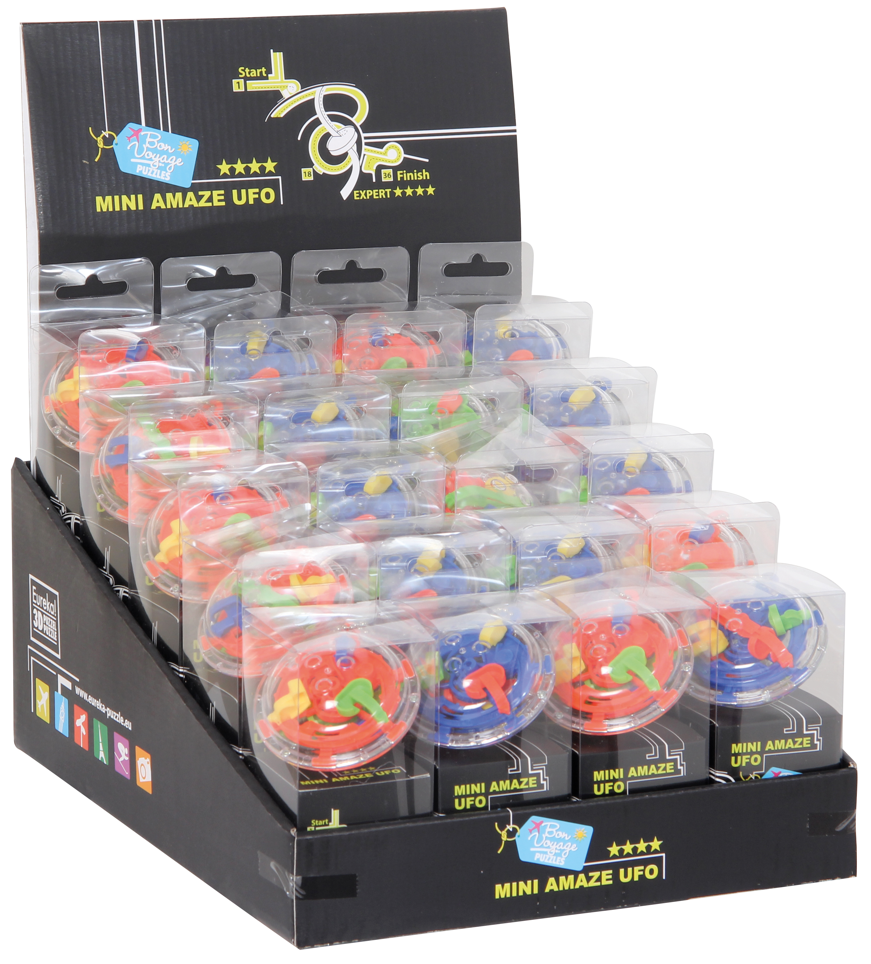 Inhalt: 20 Mini Amaze UFOs in unterschiedlichen Farben. Schwierigkeitsgrad Expert. Ab 7 Jahren. Schachtelmaß eines Puzzles: 6 x 6x11,5cm.