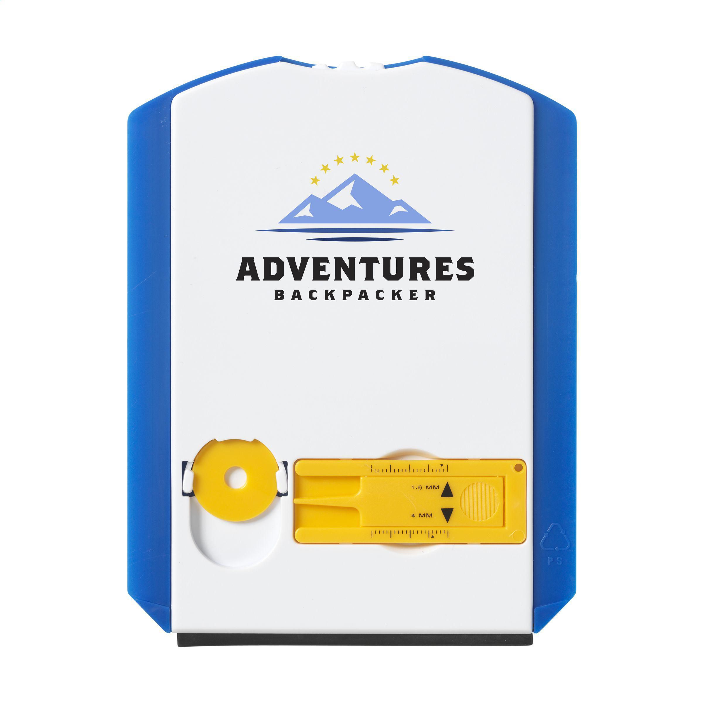 Kunststoff Parkscheibe mit Eiskratzer, gummiertem Scheibenwischer, 1 Einkaufswagenchip und Reifenprofilmesser.
