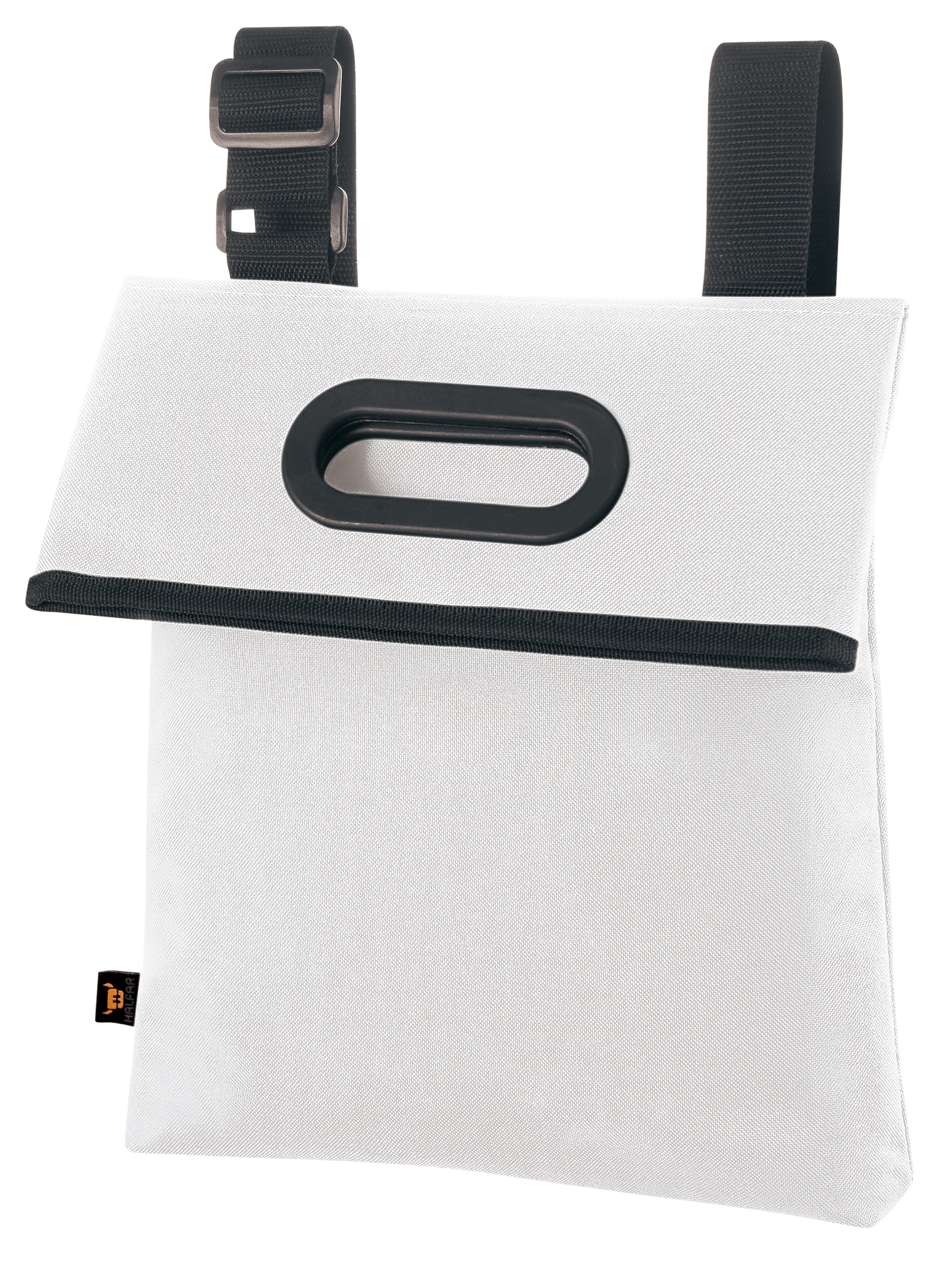 Großes Hauptfach mit dekorativem Handgriff und Klettverschluss, geeignet für DIN A4-Unterlagen und Kataloge; längenverstellbarer Schultergurt
