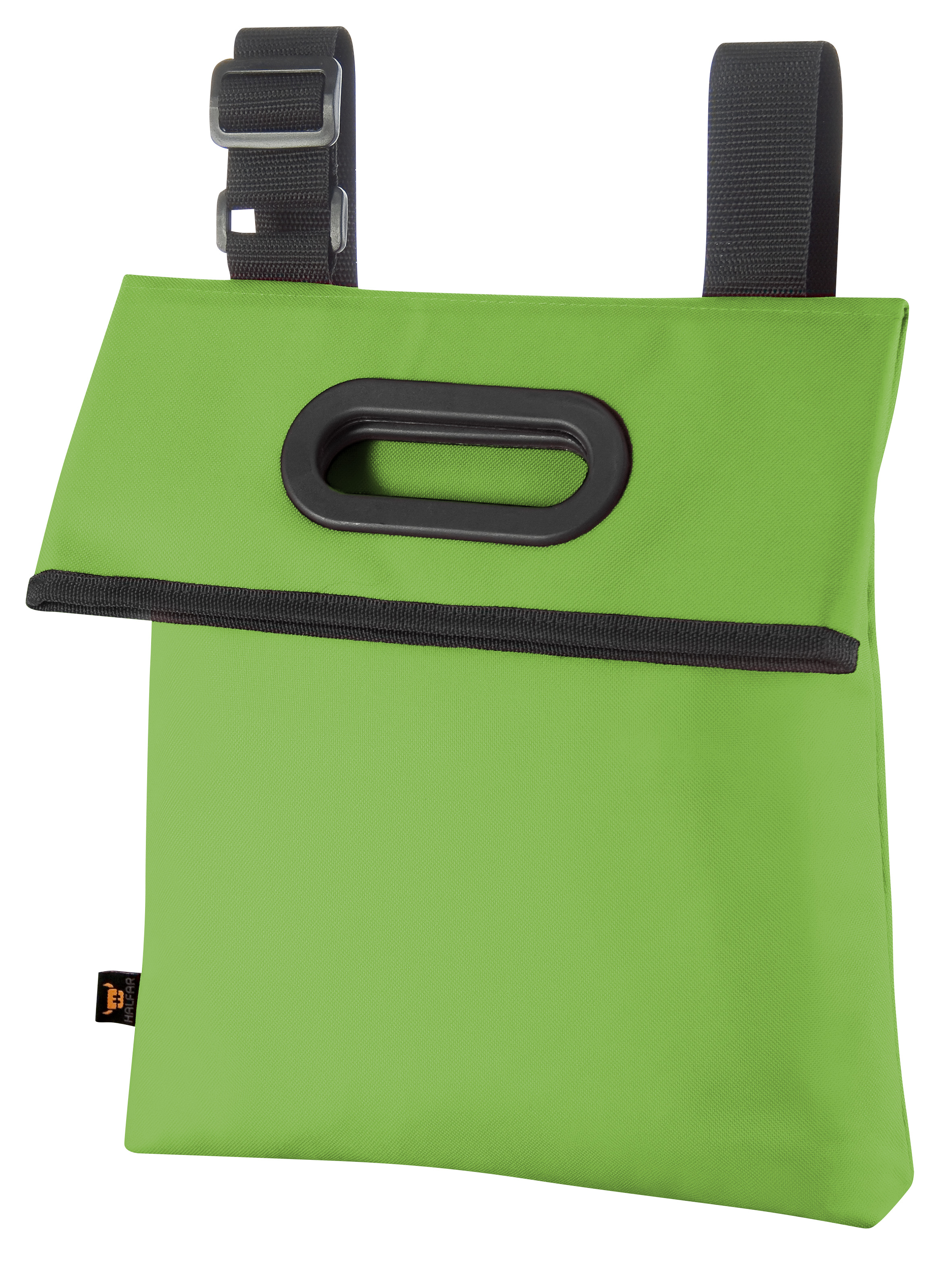 Großes Hauptfach mit dekorativem Handgriff und Klettverschluss, geeignet für DIN A4-Unterlagen und Kataloge; längenverstellbarer Schultergurt