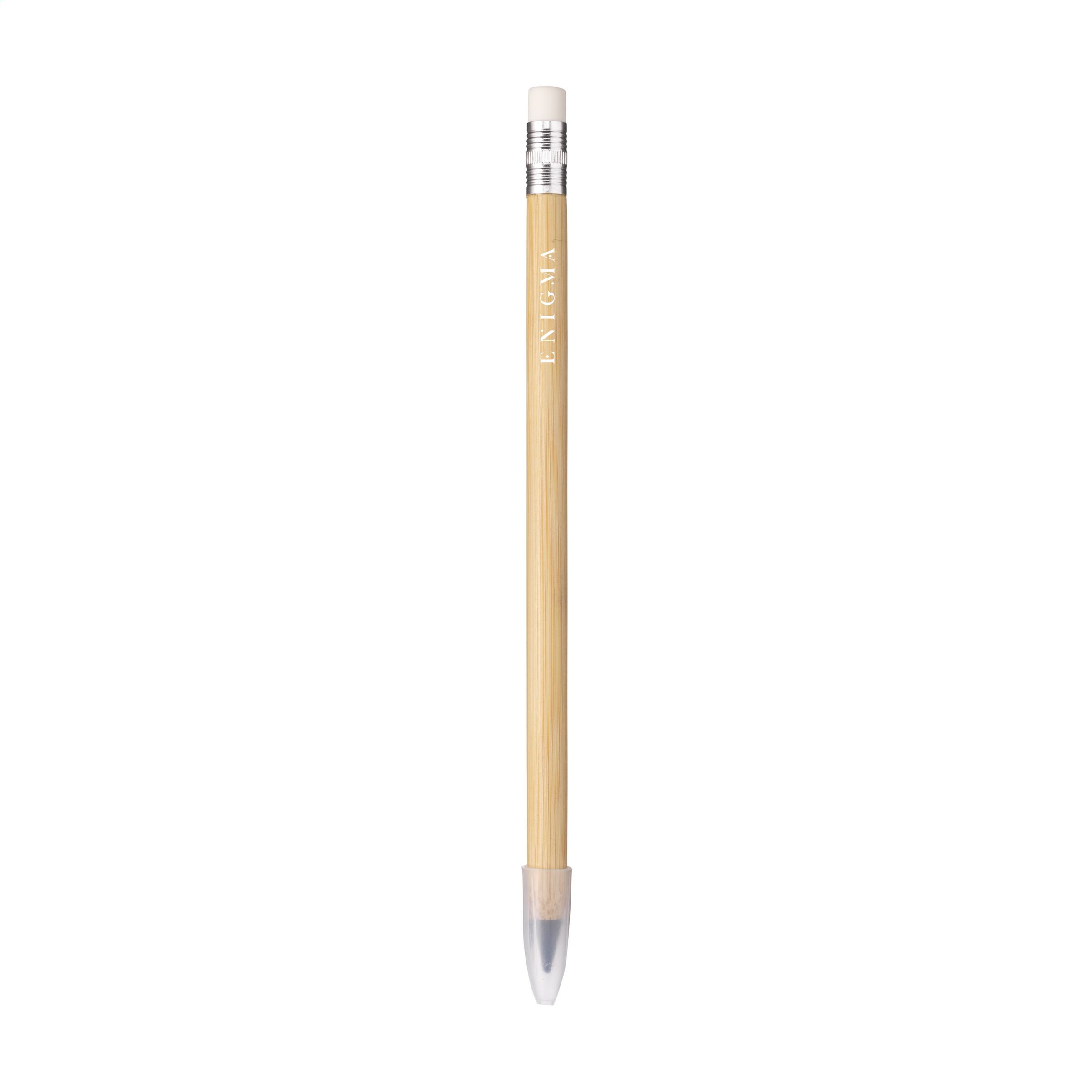 WoW! Bambus-Bleistift, der den traditionellen Bleistift ersetzt. Er sieht aus wie ein herkömmlicher Bleistift, schreibt wie ein herkömmlicher Bleistift und kann auch ausradiert werden. Dieser Bleistift hat allerdings eine Graphitspitze mit einer Schreiblänge von bis zu ca. 20.000 Metern. Die Spitze muss nicht angespitzt werden und nutzt sich sehr langsam ab. Dadurch hält der Stift bis zu 100 Mal länger als ein herkömmlicher Bleistift. Mit Radiergummi auf der Oberseite und einer praktischen Schutzkappe.