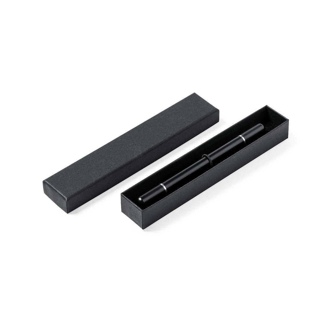 Kugelschreiber und ewiger Bleistift 2 in 1, hergestellt aus langlebigem Metall mit glänzender Oberfläche. Mit Kappenverschluss, einschließlich Kugelschreiber an einem Ende (Jumbo-Patrone und blaue Tinte) und ewiger Bleistift am anderen Ende, um immer den gleichen Bleistift zu verwenden und keinen Abfall zu produzieren. Präsentiert in einem individuellen schwarzen Etui.