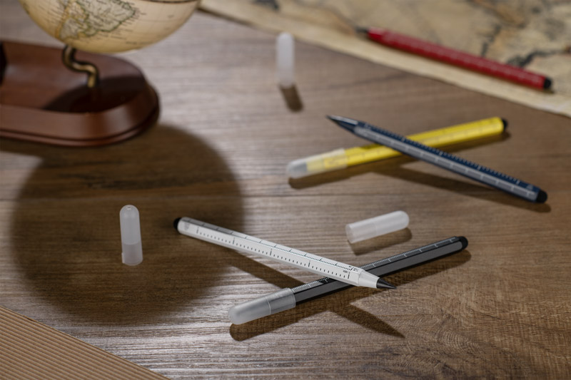Der DRAWI Ewiger Bleistift ist ein praktisches Werbegeschenk aus recyceltem Aluminium mit lackierter Oberfläche. Ausgestattet mit einem 11 cm langen Maßband mit Zentimeter- und Inch-Teilung und einem Touch-Pen, wird er sich im Büro, in der Technik und im Baugewerbe als nützlich erweisen. Das sechseckige Gehäuse liegt gut in der Hand und verhindert, dass der Stift vom Tisch rollt. Ein Kunststoffstopper schützt die Spitze und erhöht den Komfort. Durch das kompakte Format ist der DRAWI immer griffbereit und dank seiner Beschriftungsmöglichkeiten ein robuster Werbeträger.