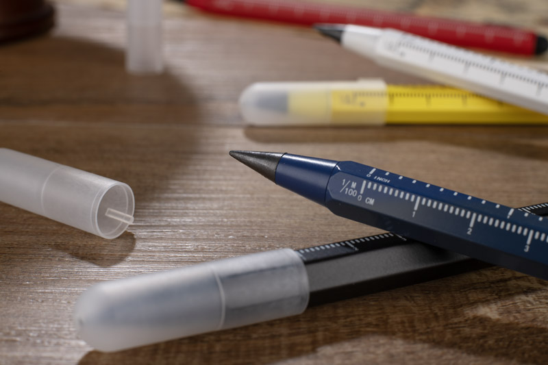 Der DRAWI Ewiger Bleistift ist ein praktisches Werbegeschenk aus recyceltem Aluminium mit lackierter Oberfläche. Ausgestattet mit einem 11 cm langen Maßband mit Zentimeter- und Inch-Teilung und einem Touch-Pen, wird er sich im Büro, in der Technik und im Baugewerbe als nützlich erweisen. Das sechseckige Gehäuse liegt gut in der Hand und verhindert, dass der Stift vom Tisch rollt. Ein Kunststoffstopper schützt die Spitze und erhöht den Komfort. Durch das kompakte Format ist der DRAWI immer griffbereit und dank seiner Beschriftungsmöglichkeiten ein robuster Werbeträger.