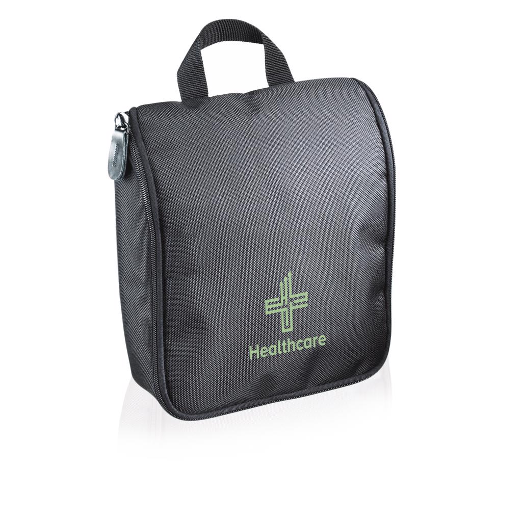 1680D Nylon Kosmetiktasche mit diversen Einsteckfächern und einem Haken zum Aufhängen.