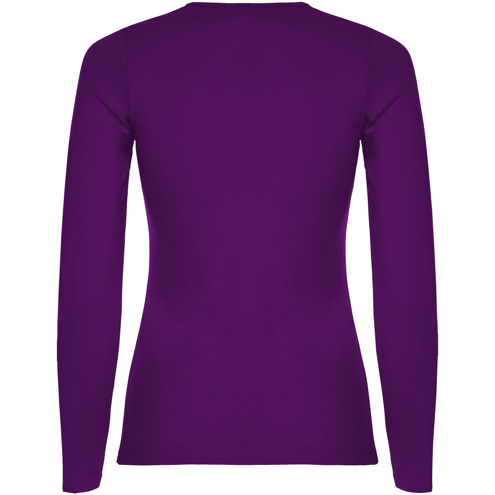 Langärmeliges, halb tailliertes T-Shirt mit feinem Halsbündchen. Keine Ärmelbündchen. Seitennähte. Herausnehmbares Etikett.