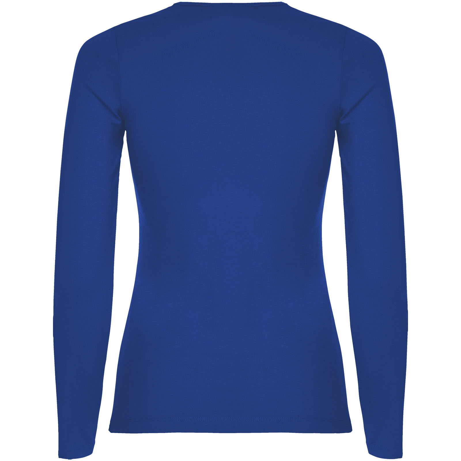 Langärmeliges, halb tailliertes T-Shirt mit feinem Halsbündchen. Keine Ärmelbündchen. Seitennähte. Herausnehmbares Etikett.