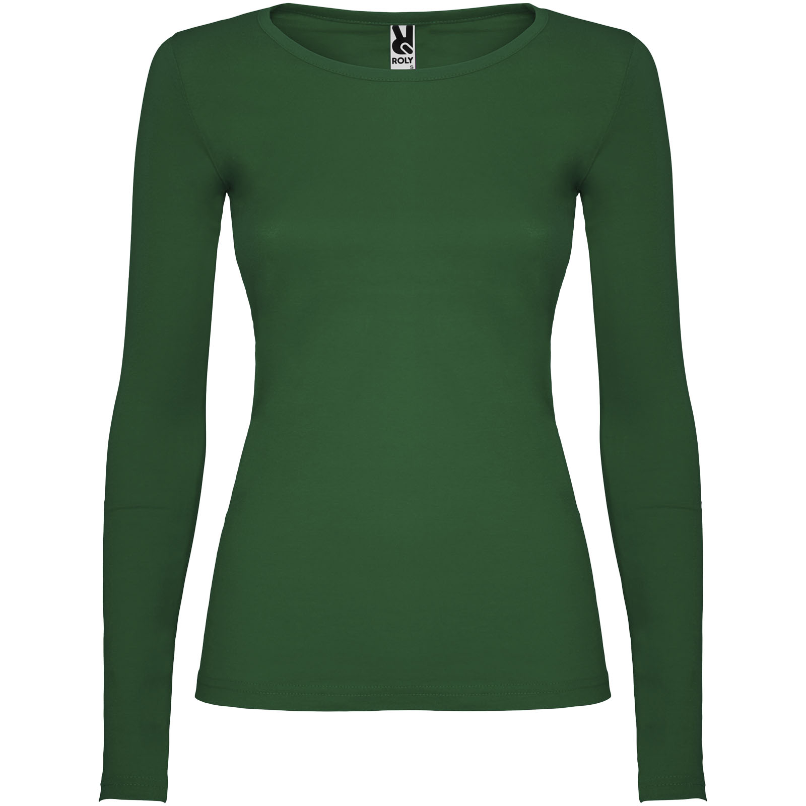Langärmeliges, halb tailliertes T-Shirt mit feinem Halsbündchen. Keine Ärmelbündchen. Seitennähte. Herausnehmbares Etikett.