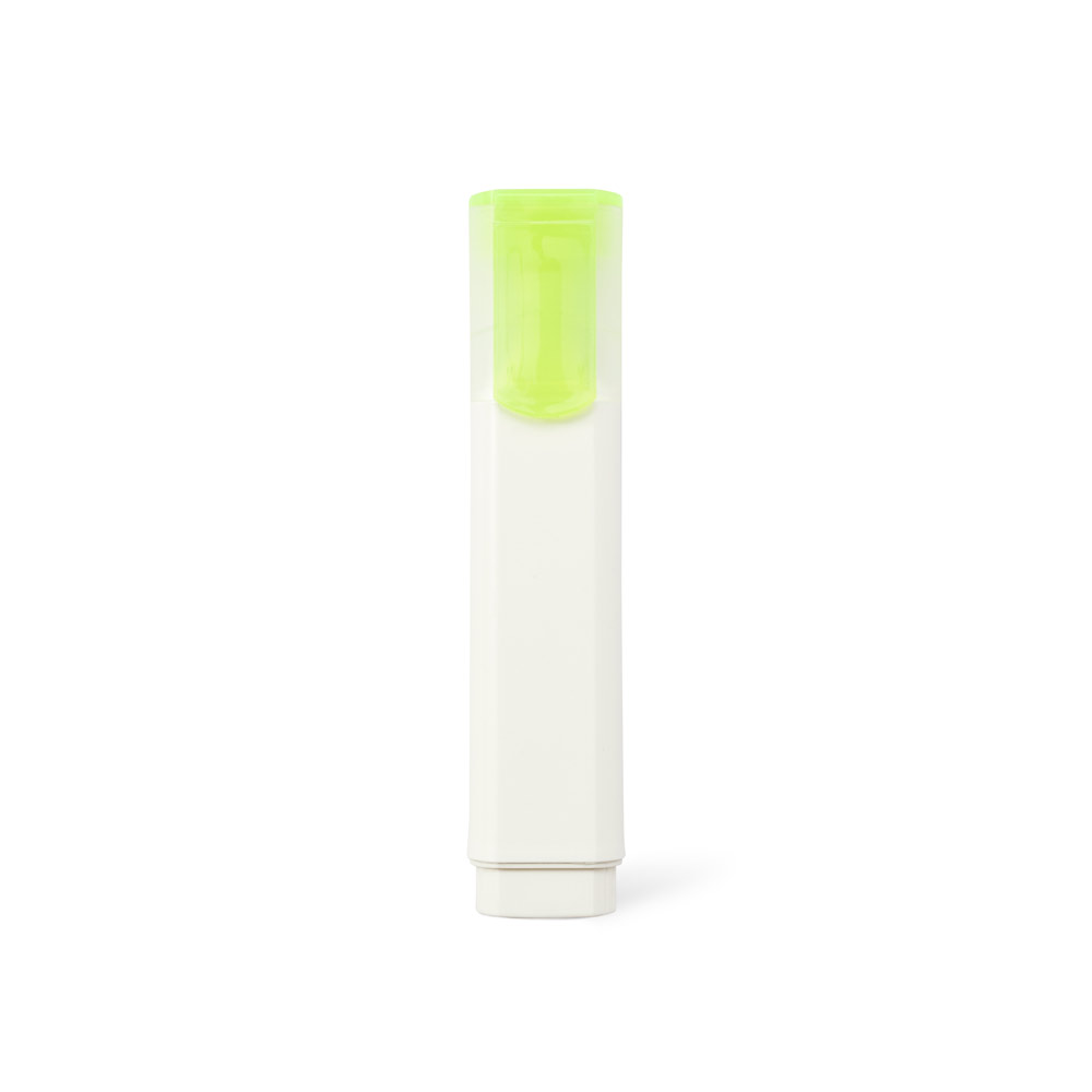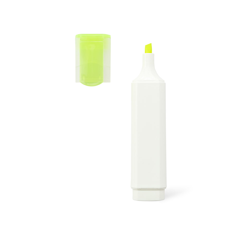 PP-Textmarker mit glänzender Oberfläche. Er verfügt über einen Clip, einen weißen Schaft und eine durchsichtige Kappe, die zur Farbe des Textmarkers passt. Ideal zum Markieren von Wörtern, Texten oder Sätzen, die Sie in Ihren Dokumenten für wichtig halten. 111 x 20 mm