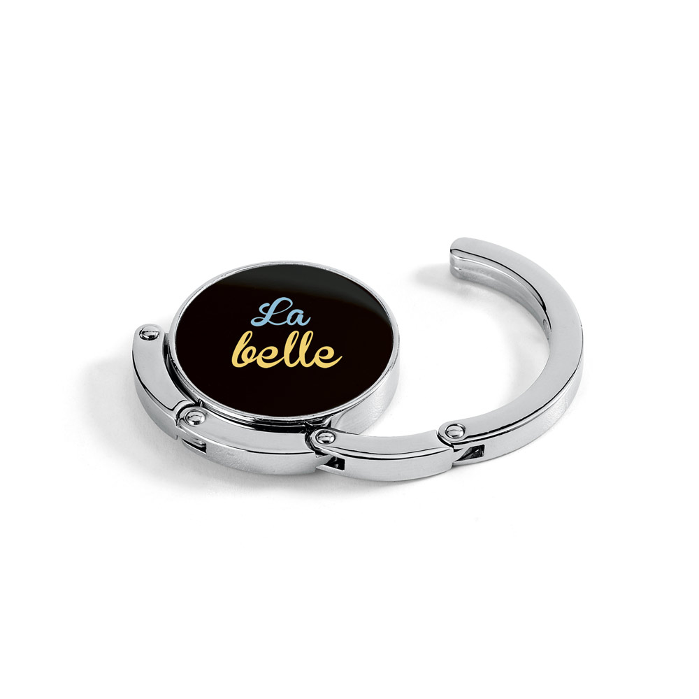 Stabiler Handtaschenhalter aus Metall. Der Handtaschenhalter kann auf einer Oberfläche platziert werden, um Ihre Handtasche aufzuhängen. Im eingeklappten Zustand bleibt er dank seines Magneten direkt an der Halterung. ø45 x 8 mm
