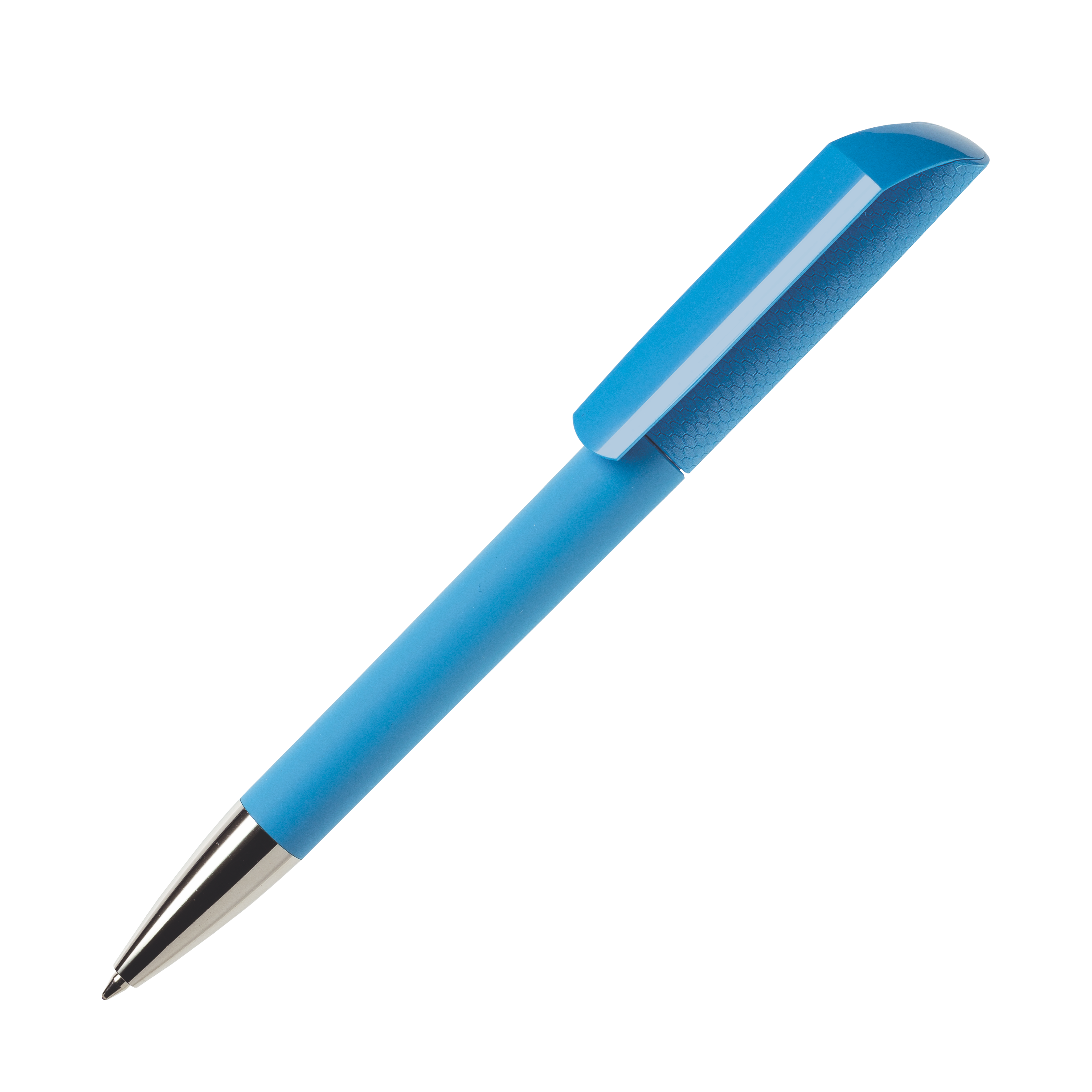 FLOW F1 GOM C CR Kugelschreiber Maxema, deckende Farben, gummiertes Gehäuse, texturierte Kappe mit Seidenmatt-Finish, Clip mit Hochglanz-Finish, Spitze verchromt, blauschreibend