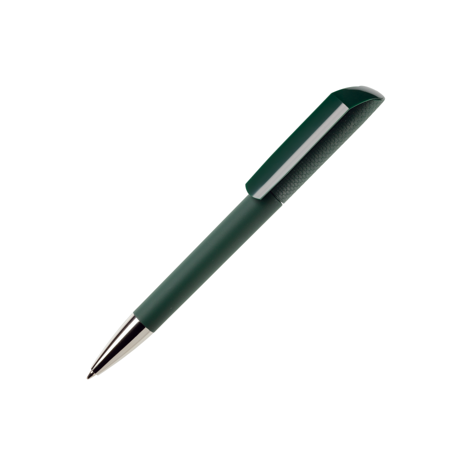 FLOW F1 GOM C CR Kugelschreiber Maxema, deckende Farben, gummiertes Gehäuse, texturierte Kappe mit Seidenmatt-Finish, Clip mit Hochglanz-Finish, Spitze verchromt, blauschreibend