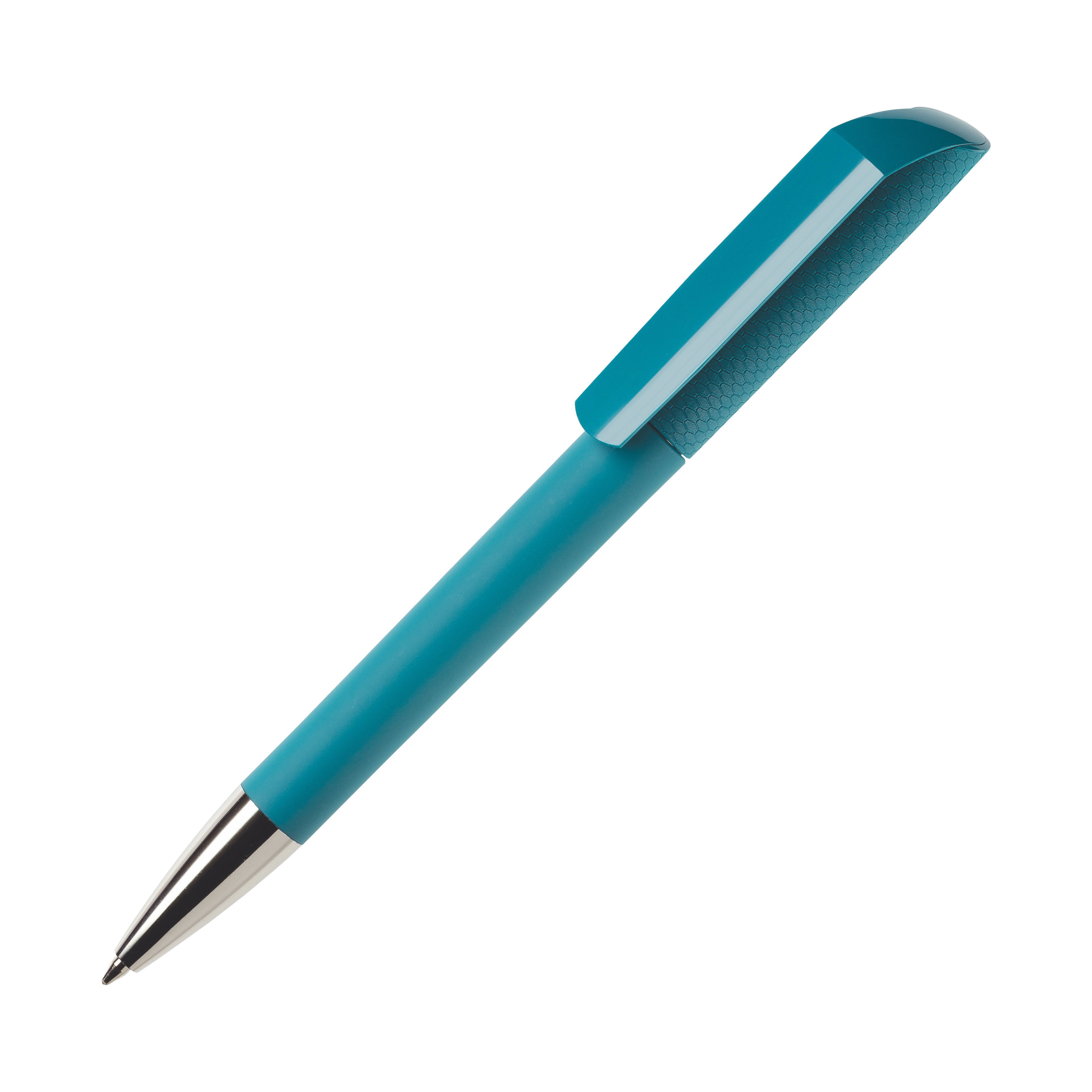 FLOW F1 GOM C CR Kugelschreiber Maxema, deckende Farben, gummiertes Gehäuse, texturierte Kappe mit Seidenmatt-Finish, Clip mit Hochglanz-Finish, Spitze verchromt, blauschreibend