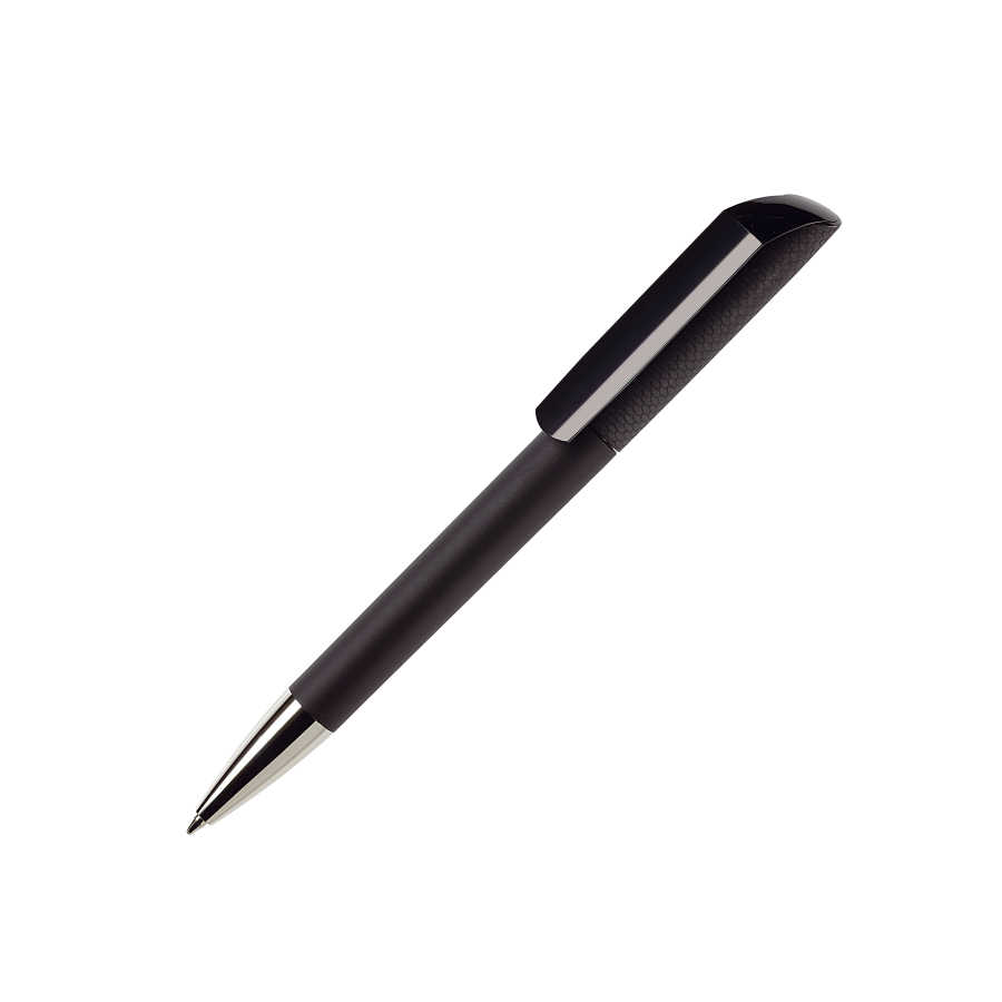 FLOW F1 GOM C CR Kugelschreiber Maxema, deckende Farben, gummiertes Gehäuse, texturierte Kappe mit Seidenmatt-Finish, Clip mit Hochglanz-Finish, Spitze verchromt, blauschreibend