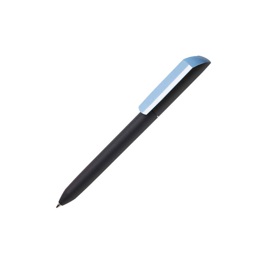 FLOW PURE F2P GOM K Kugelschreiber Maxema, deckende Farben, gummiertes Gehäuse und Kappe in schwarz, Clip mit Hochglanz-Finish, blauschreibend