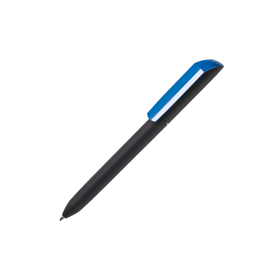 FLOW PURE F2P GOM K Kugelschreiber Maxema, deckende Farben, gummiertes Gehäuse und Kappe in schwarz, Clip mit Hochglanz-Finish, blauschreibend
