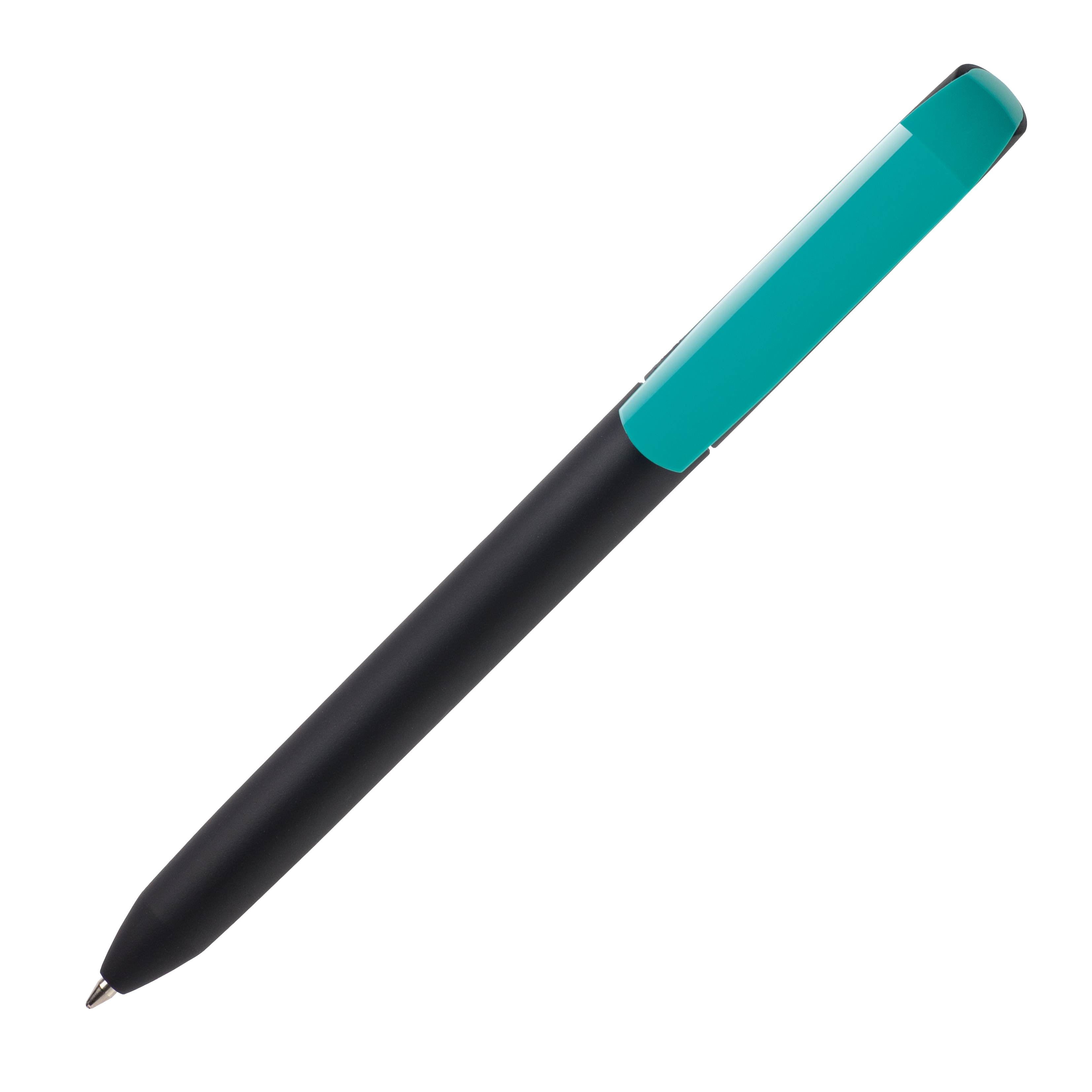 FLOW PURE F2P GOM K Kugelschreiber Maxema, deckende Farben, gummiertes Gehäuse und Kappe in schwarz, Clip mit Hochglanz-Finish, blauschreibend