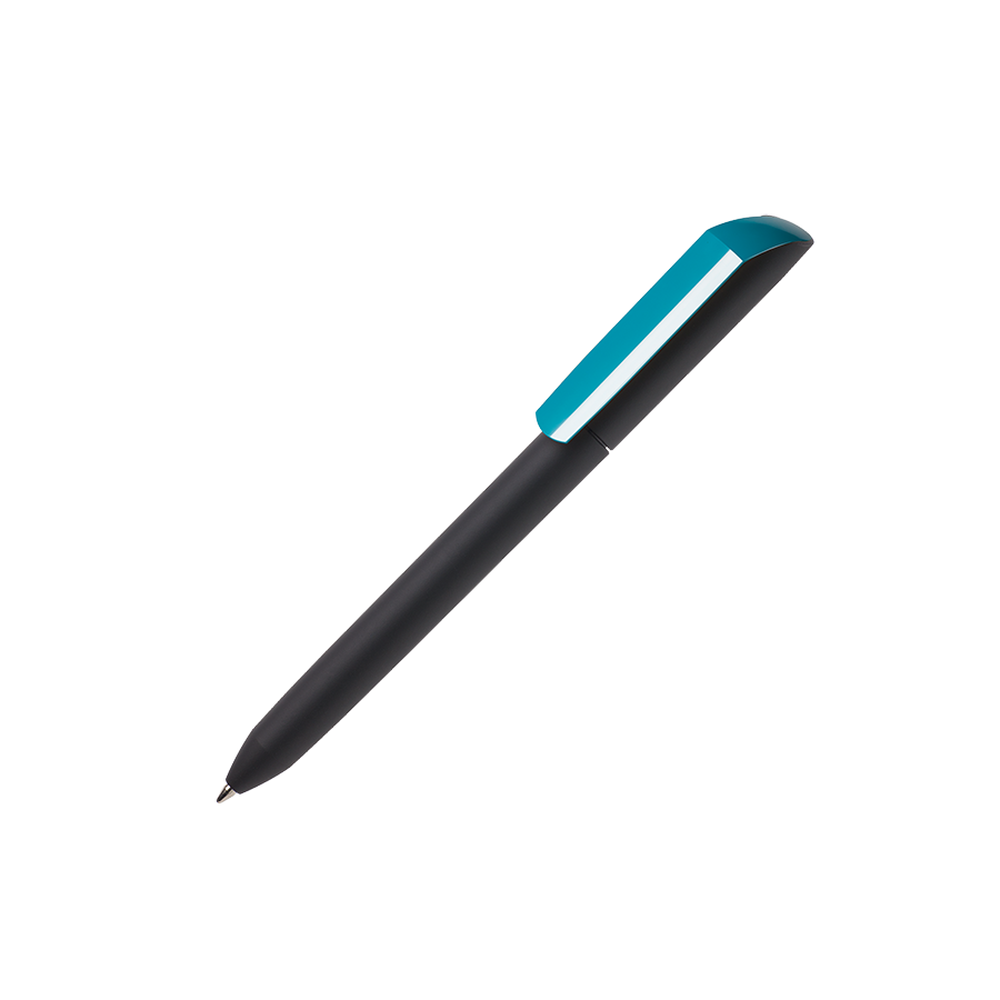 FLOW PURE F2P GOM K Kugelschreiber Maxema, deckende Farben, gummiertes Gehäuse und Kappe in schwarz, Clip mit Hochglanz-Finish, blauschreibend