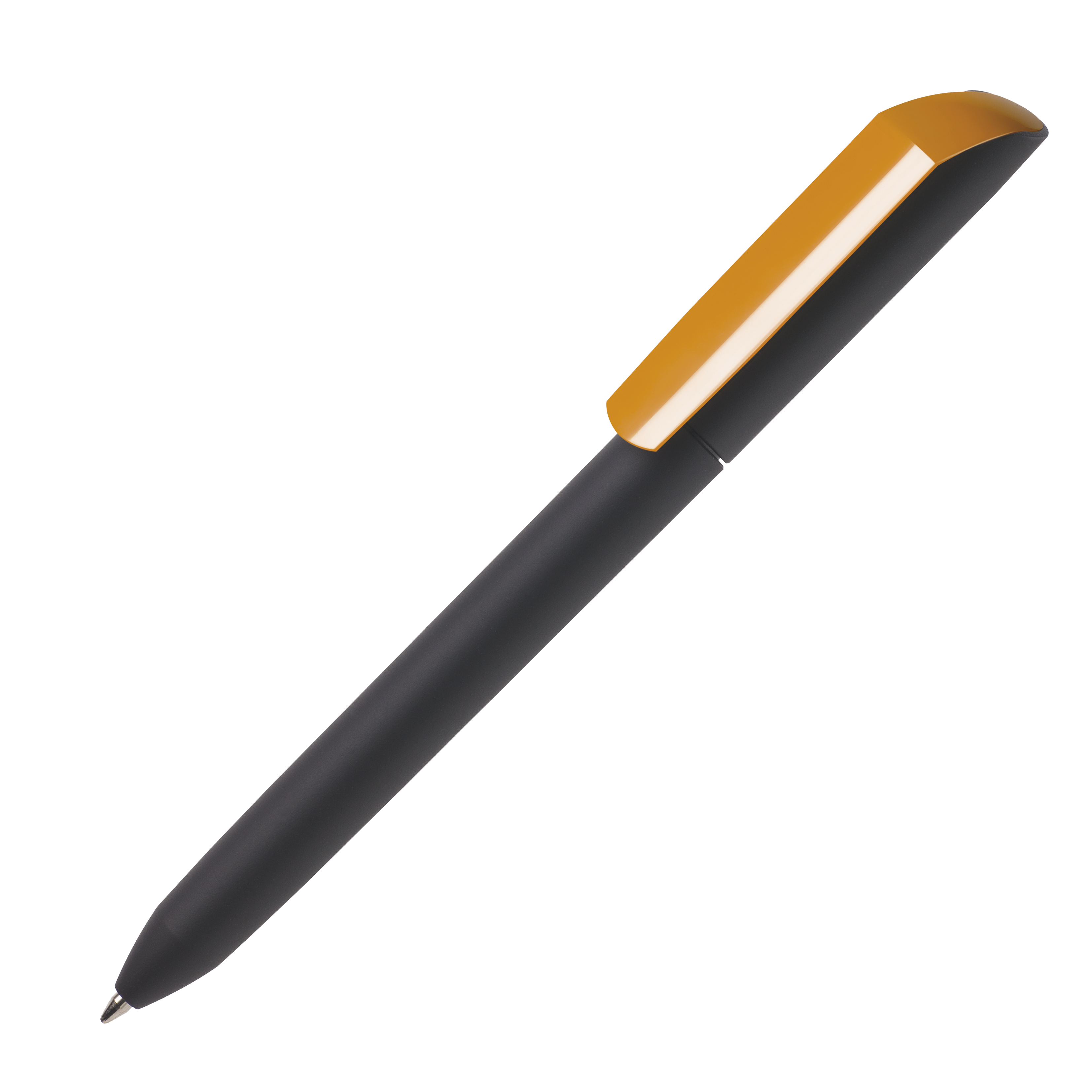 FLOW PURE F2P GOM K Kugelschreiber Maxema, deckende Farben, gummiertes Gehäuse und Kappe in schwarz, Clip mit Hochglanz-Finish, blauschreibend