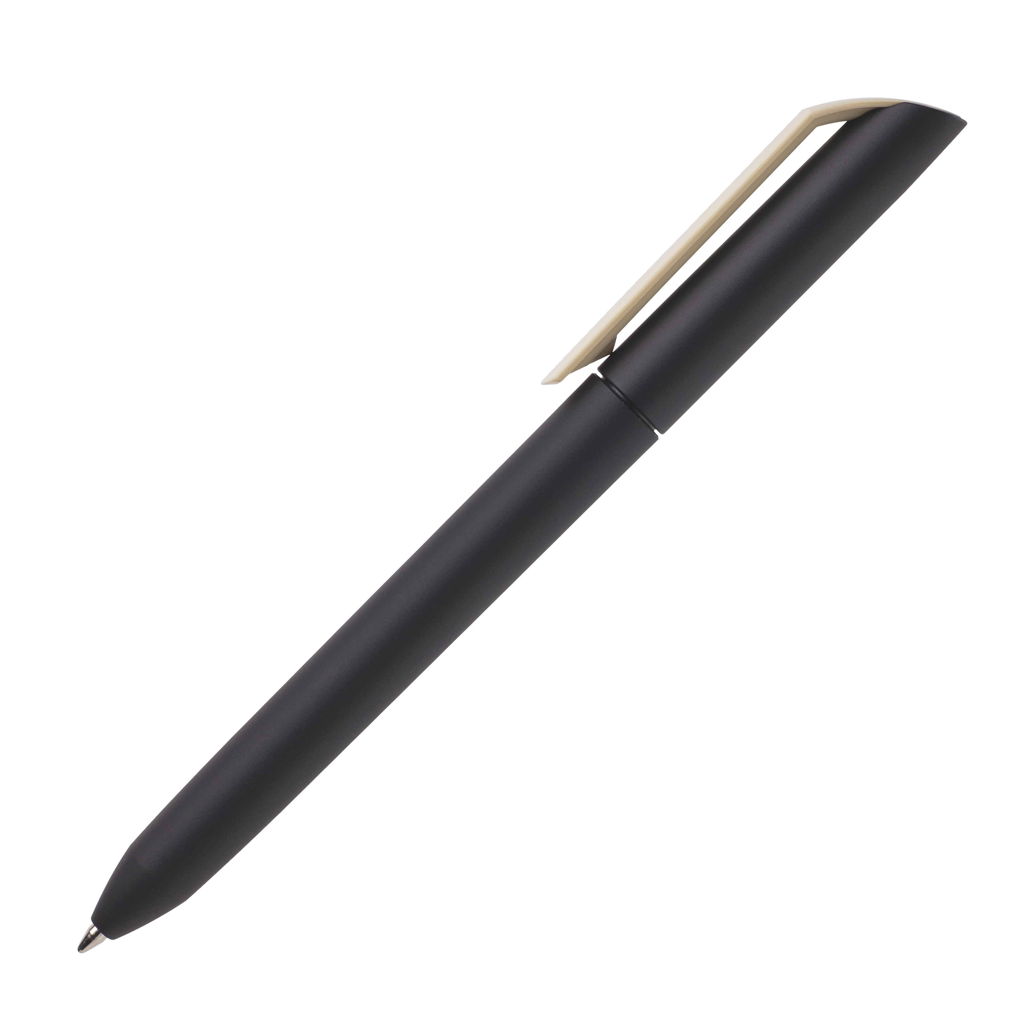 FLOW PURE F2P GOM K Kugelschreiber Maxema, deckende Farben, gummiertes Gehäuse und Kappe in schwarz, Clip mit Hochglanz-Finish, blauschreibend
