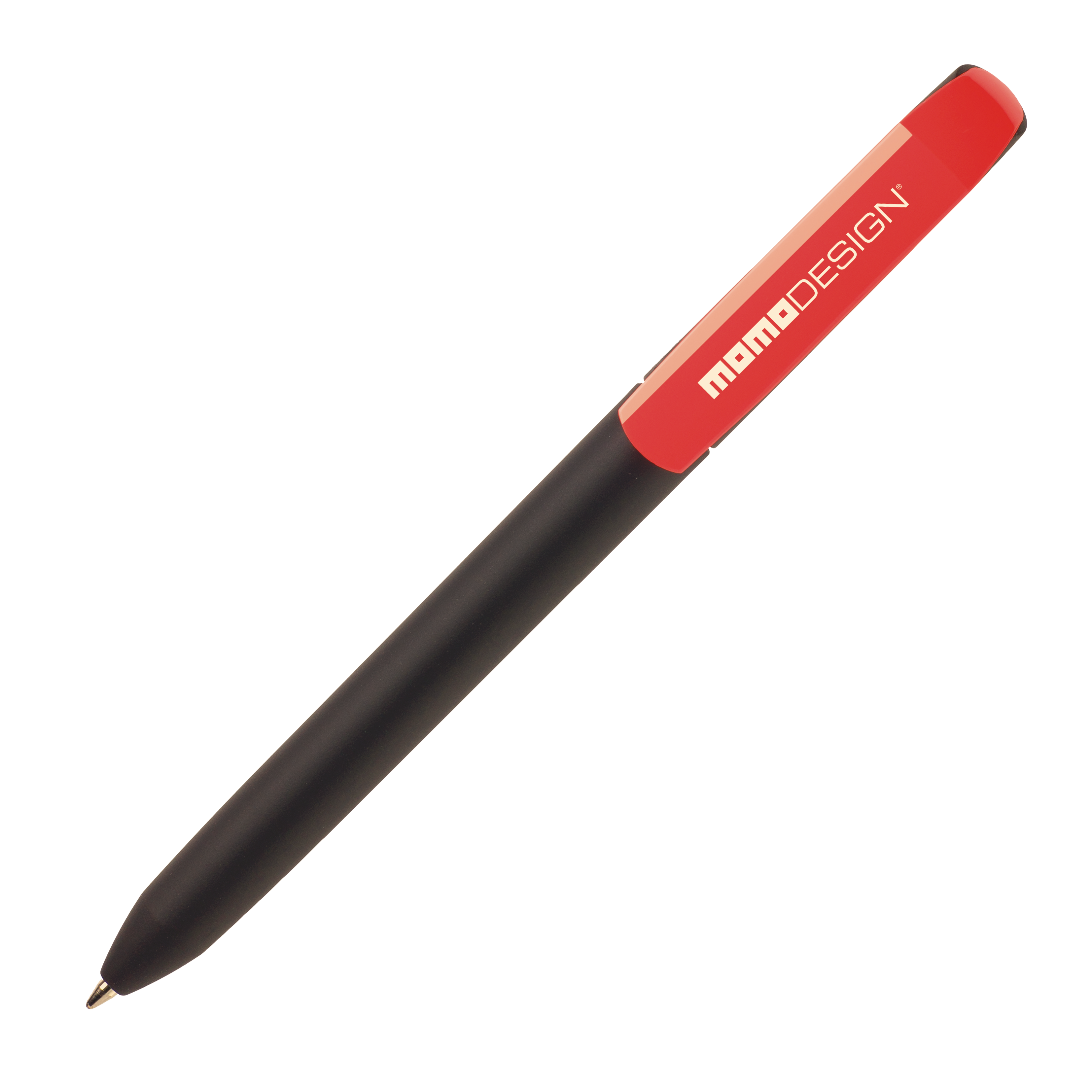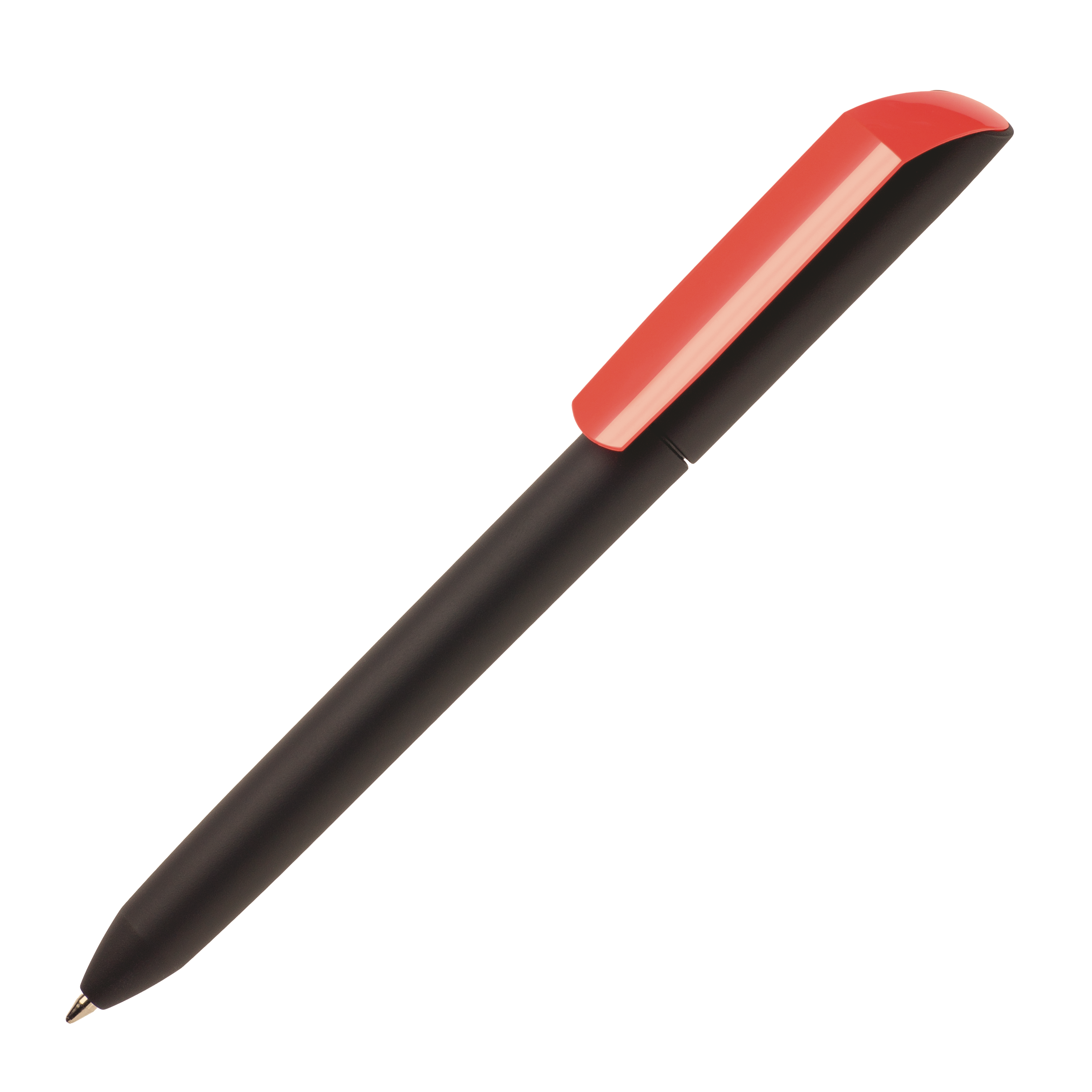 FLOW PURE F2P GOM KF Kugelschreiber Maxema, deckende Farben, gummiertes Gehäuse und Kappe in schwarz, Clip in fluo Farben mit Hochglanz-Finish, blauschreibend