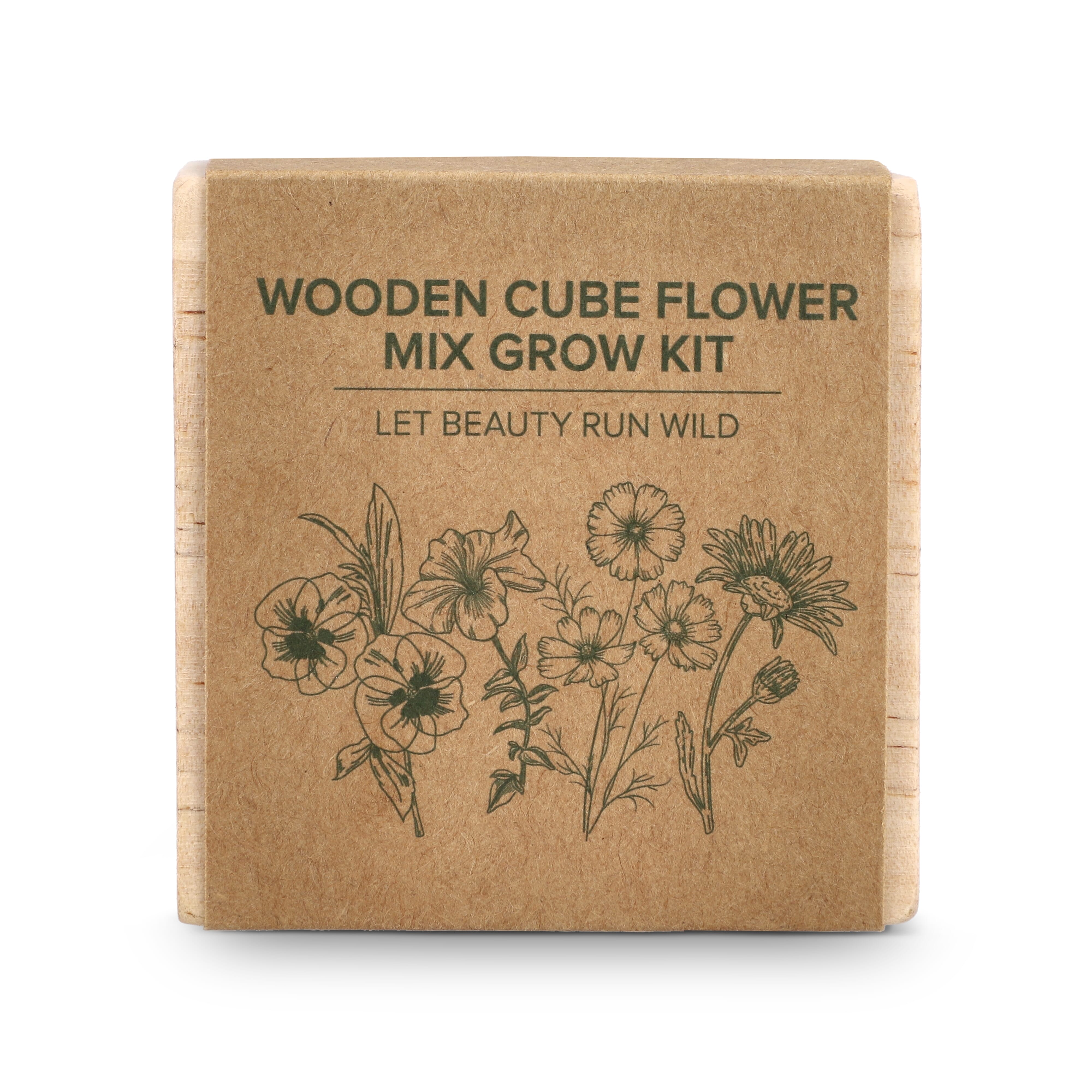 Lassen Sie der Schönheit freien Lauf! Bringen Sie mit diesem Pflanzset und Kokosfasererde Biodiversität und Farbe ins Leben. Enthält eine Wildblumenmischung aus Kosmos, Coreopsis, Stiefmütterchen und Winde. Ein Geschenk, das Marken zum Blühen bringt und gleichzeitig natürliche Schönheit verbreitet.
