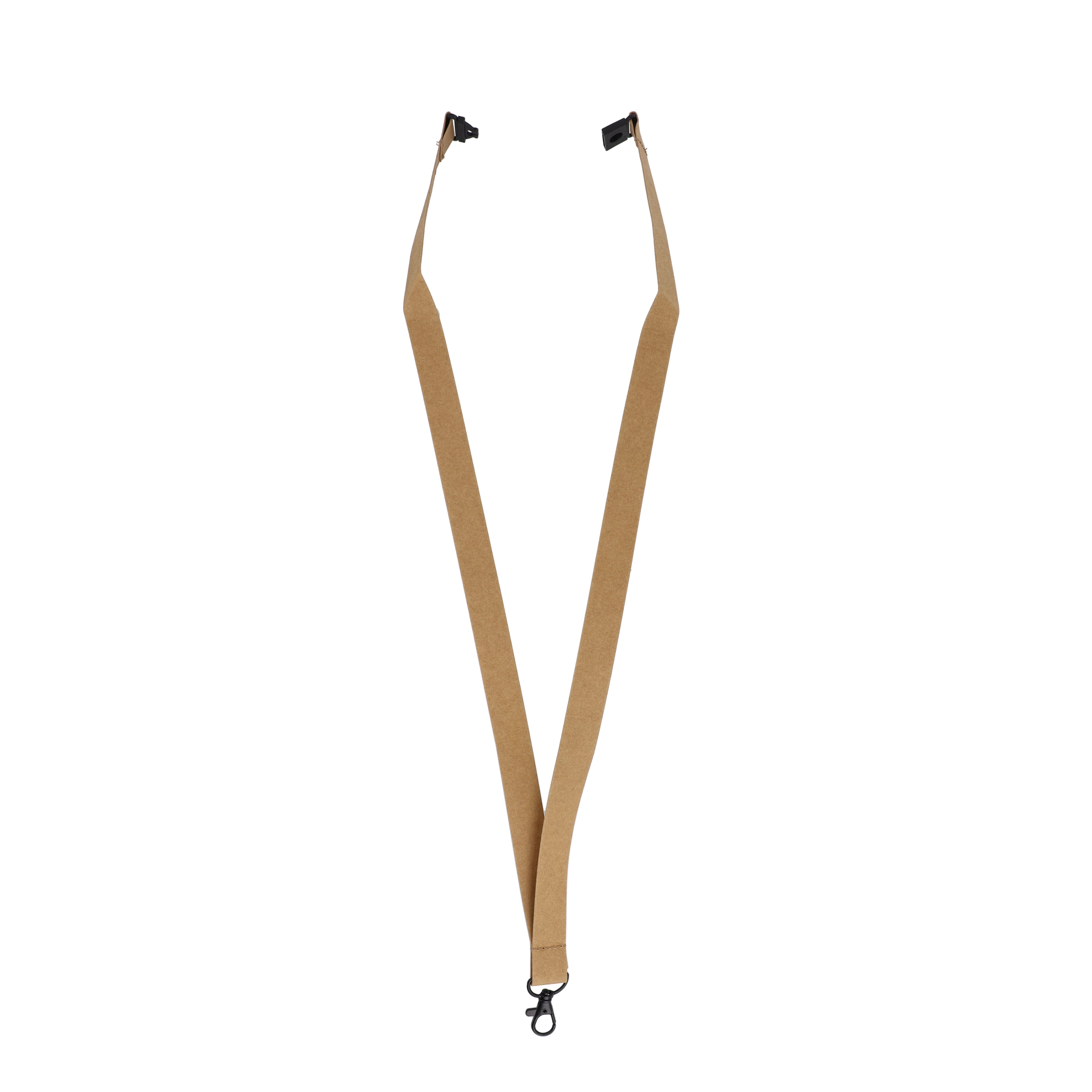Ein nachhaltiges Lanyard aus FSC-zertifiziertem Papier mit schwarzen Akzenten. Es eignet sich perfekt für Ausweise, Schlüssel oder ID-Karten und ist eine praktische Wahl für umweltbewusste Geschäftsleute. Mit Panikverschluß.