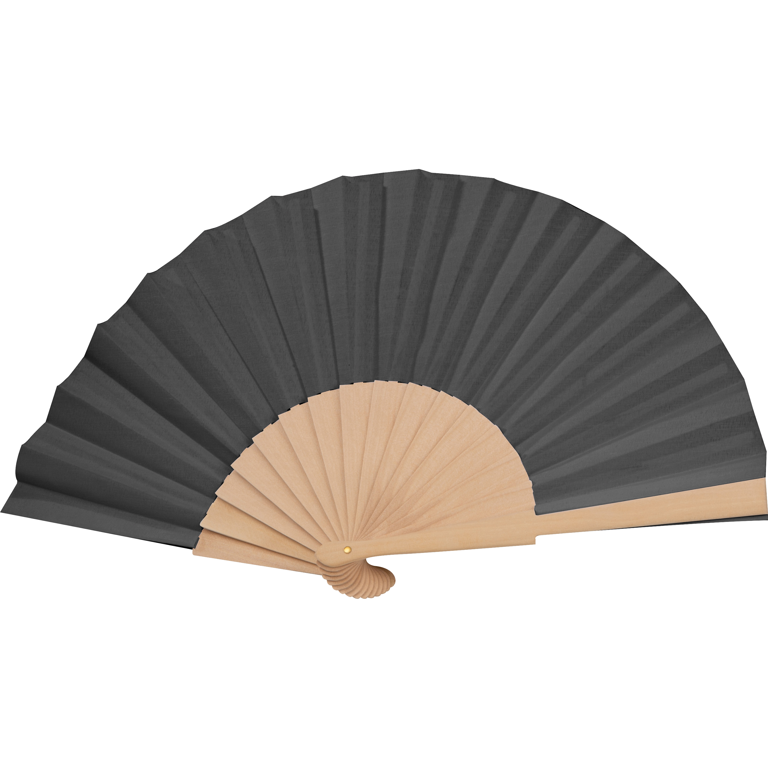 Fächer mit Griff aus Holz und Polyesterbespannung. Ideal für warme Sommertage. Ihre Werbung wird auf den Griff gedruckt.