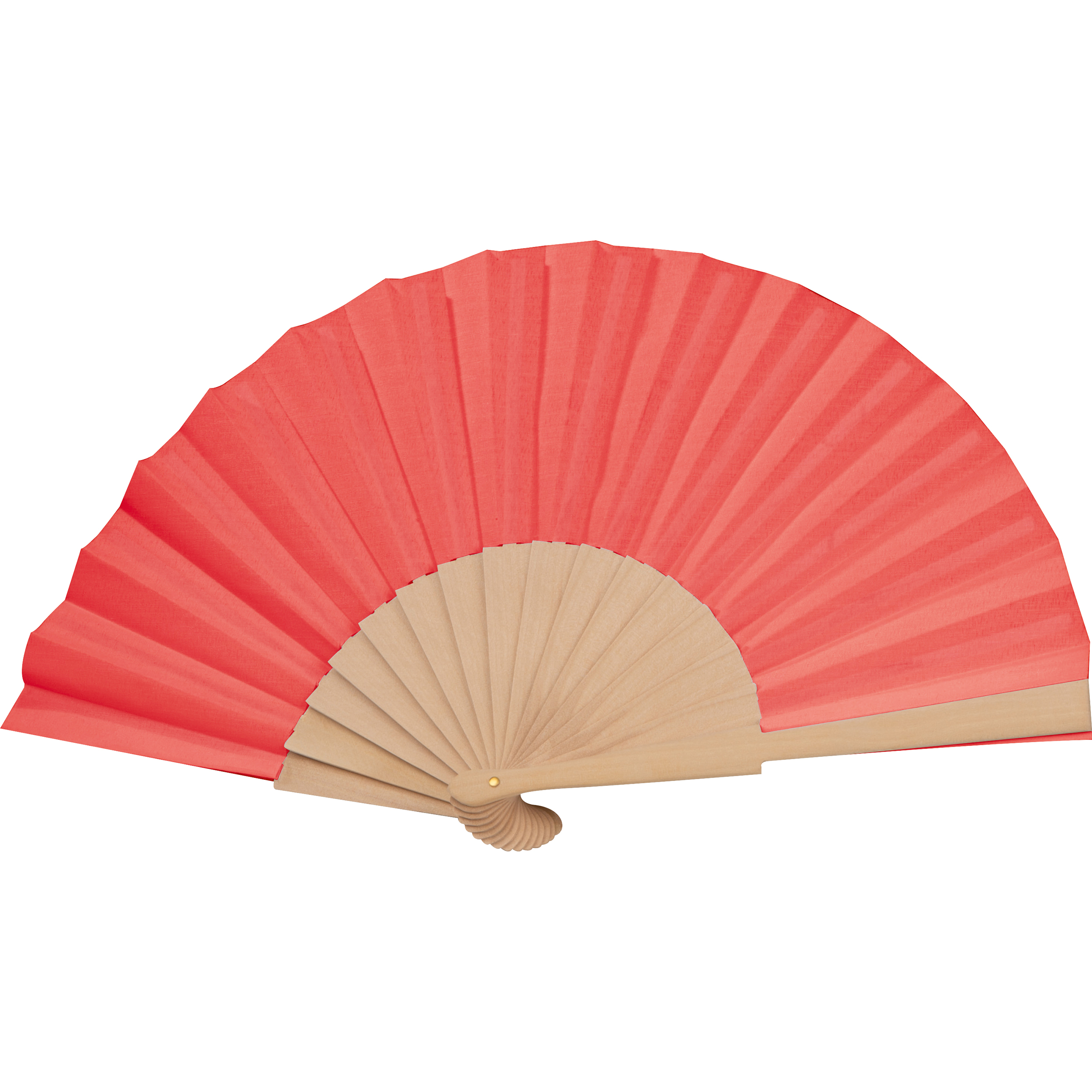 Fächer mit Griff aus Holz und Polyesterbespannung. Ideal für warme Sommertage. Ihre Werbung wird auf den Griff gedruckt.