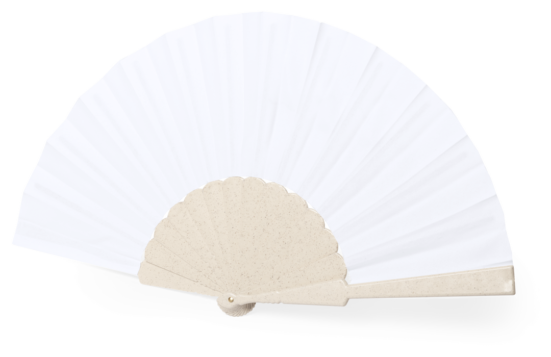 Fächer der Naturlinie mit Rippen aus Bambusfasern und Gewebe aus RPET-Material, das aus recyceltem Kunststoffmaterial gewonnen wird, um die Wiederverwendung von Kunststoffresten zu fördern und zur Nachhaltigkeit der Erde beizutragen. Präsentiert in einer individuellen, umweltfreundlichen Design-Box.