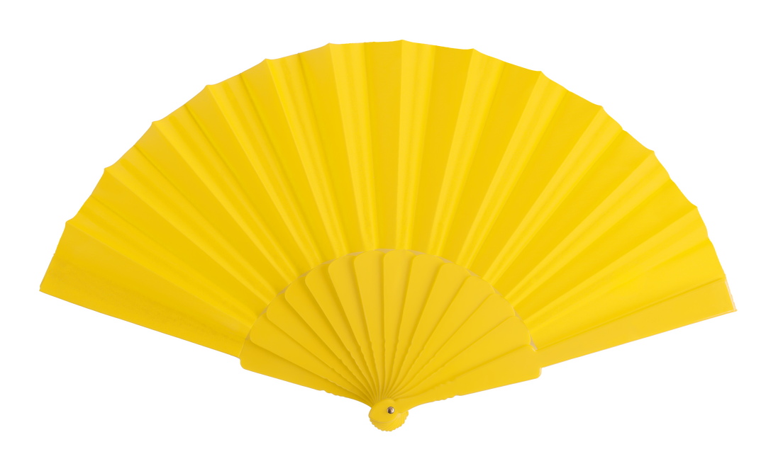 Fächer aus widerstandsfähigem Kunststoff und Polyestergewebe. Stäbe und Stoff sind in einer breiten Palette leuchtender Farben erhältlich. Präsentiert in einer individuellen Schachtel mit Sichtfenster.