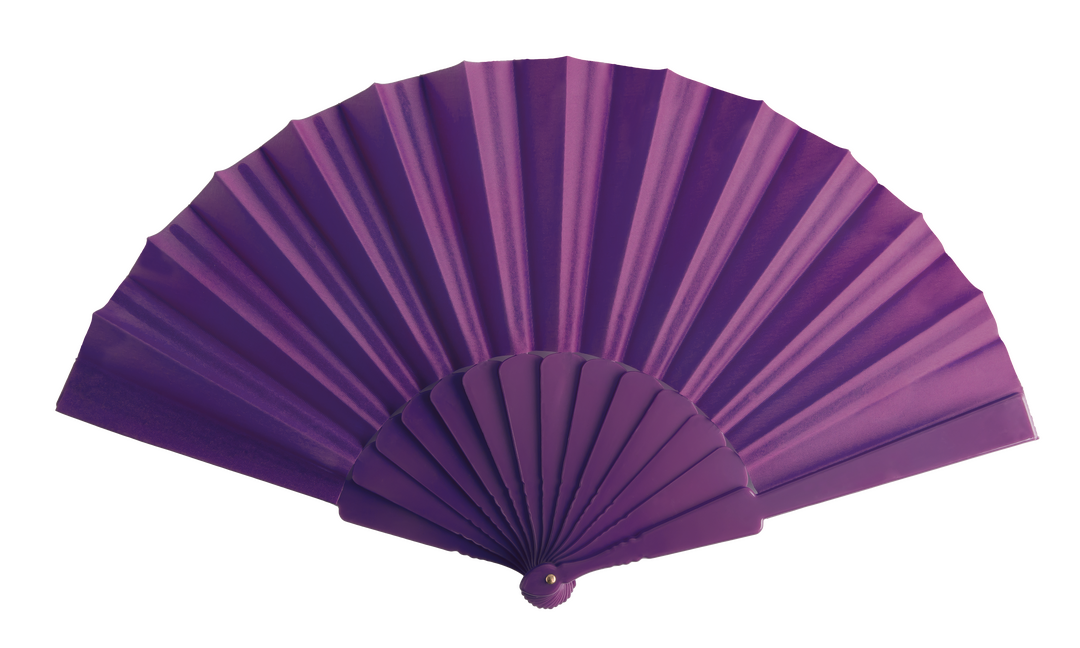 Fächer aus widerstandsfähigem Kunststoff und Polyestergewebe. Stäbe und Stoff sind in einer breiten Palette leuchtender Farben erhältlich. Präsentiert in einer individuellen Schachtel mit Sichtfenster.