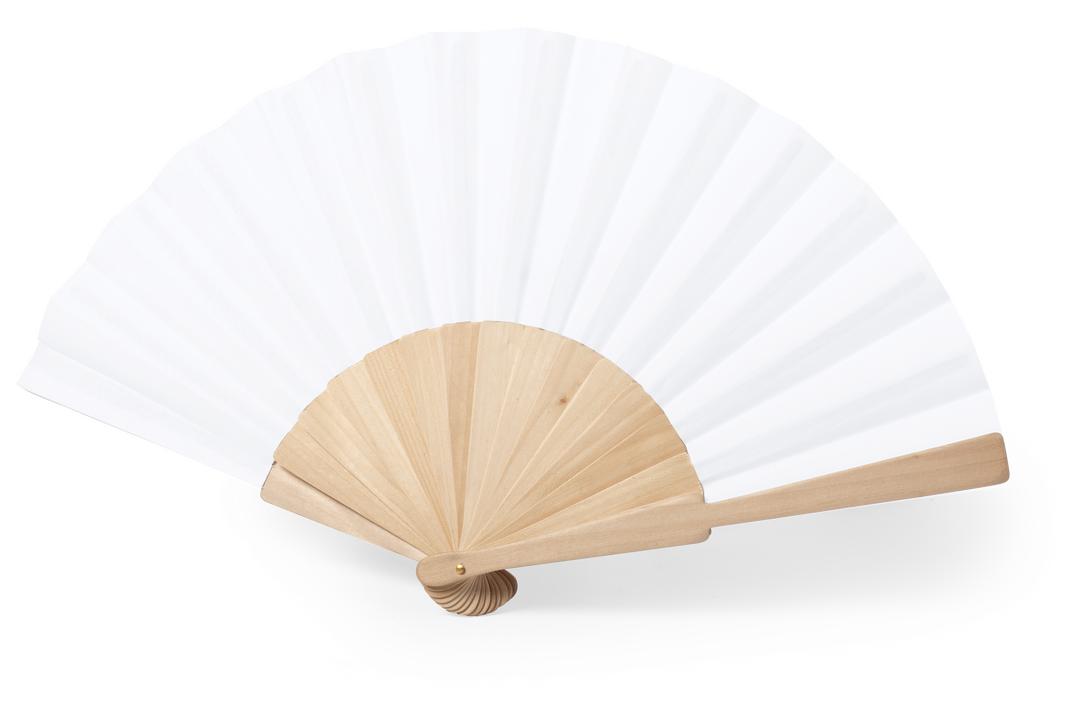 Fächer aus unserer Naturlinie mit Holzrippen und Gewebe aus RPET-Material, das aus recyceltem Kunststoffmaterial gewonnen wird, um die Wiederverwendung von Kunststoffresten zu fördern und zur Nachhaltigkeit der Erde beizutragen. Präsentiert in einer individuellen, umweltfreundlichen Design-Box.