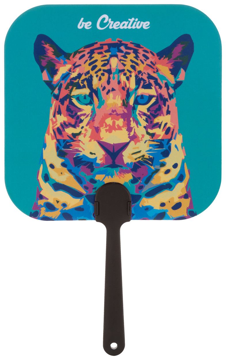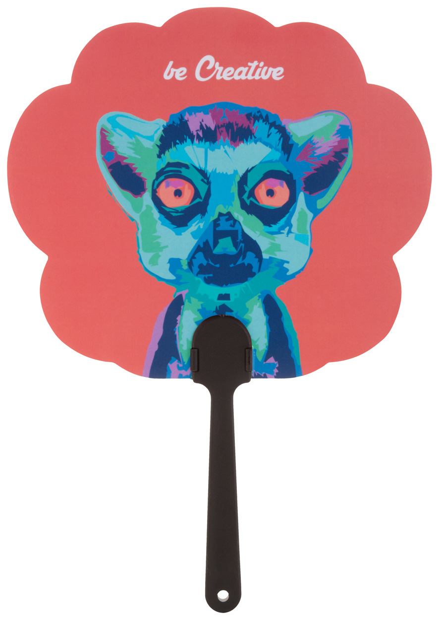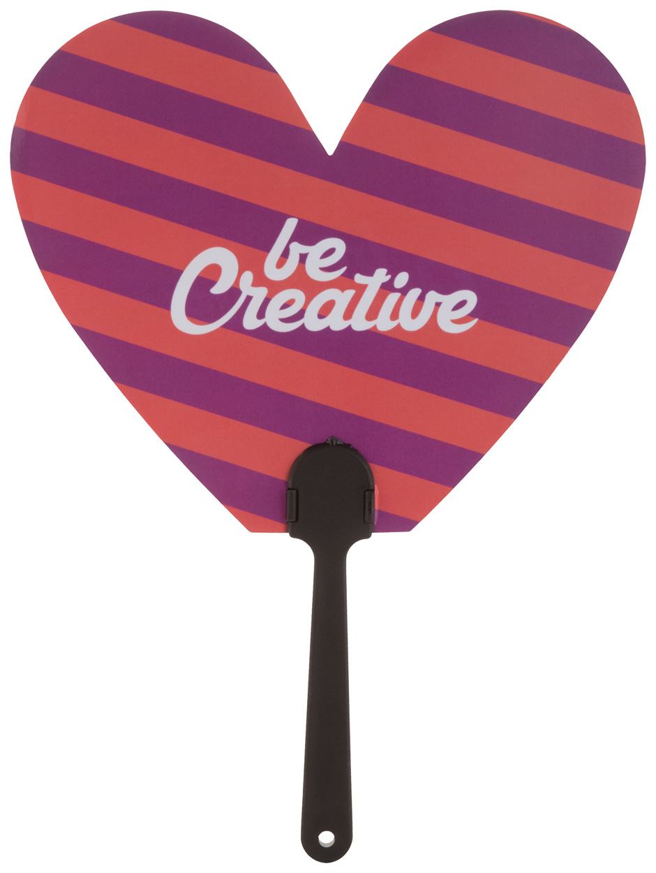 Fächer aus laminiertem Papier mit Kunststoffgriff und vollfarbigen Druck auf beiden Seiten. Der Preis ist inkl. Digitaldruck. Mindestmenge: 100 Stk.