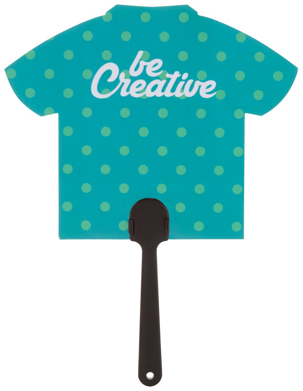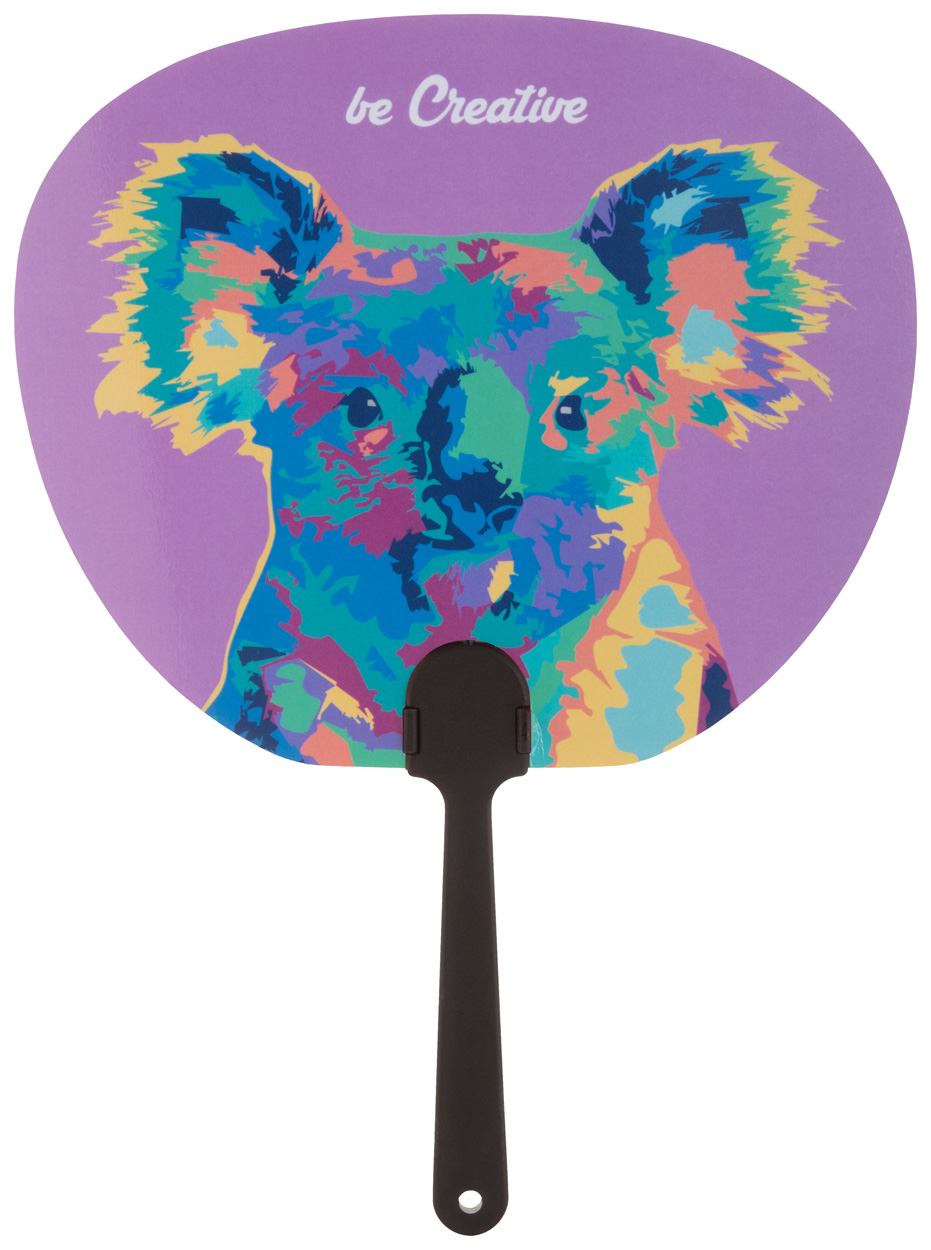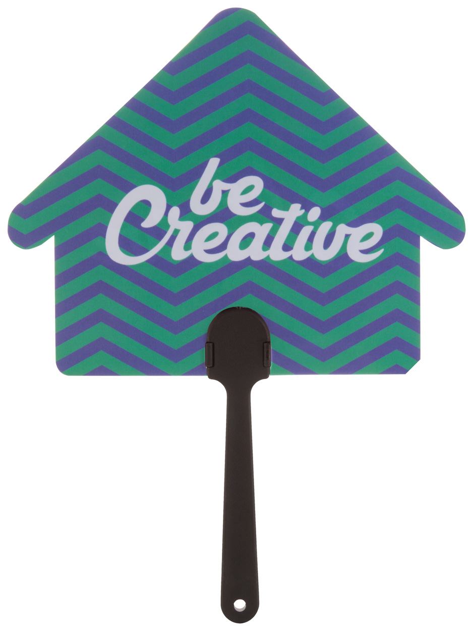 Fächer aus laminiertem Papier mit Kunststoffgriff und vollfarbigen Druck auf beiden Seiten. Der Preis ist inkl. Digitaldruck. Mindestmenge: 100 Stk.