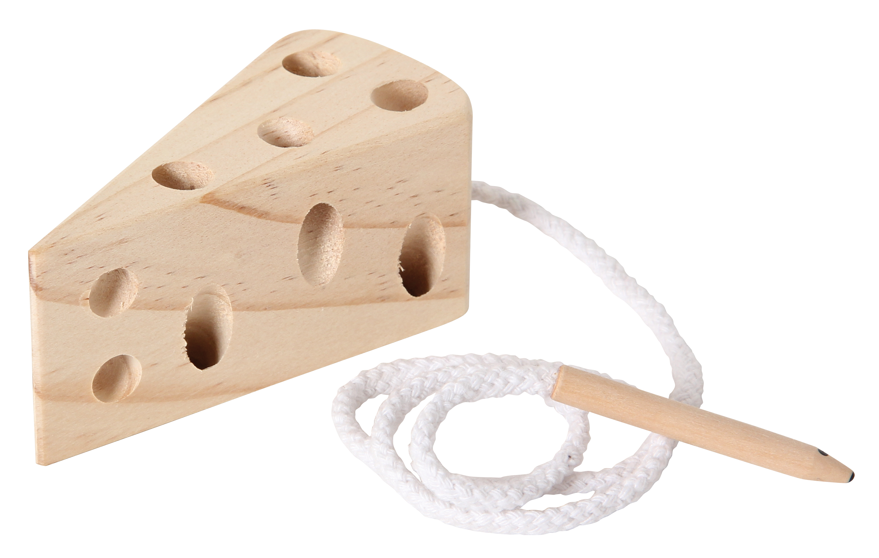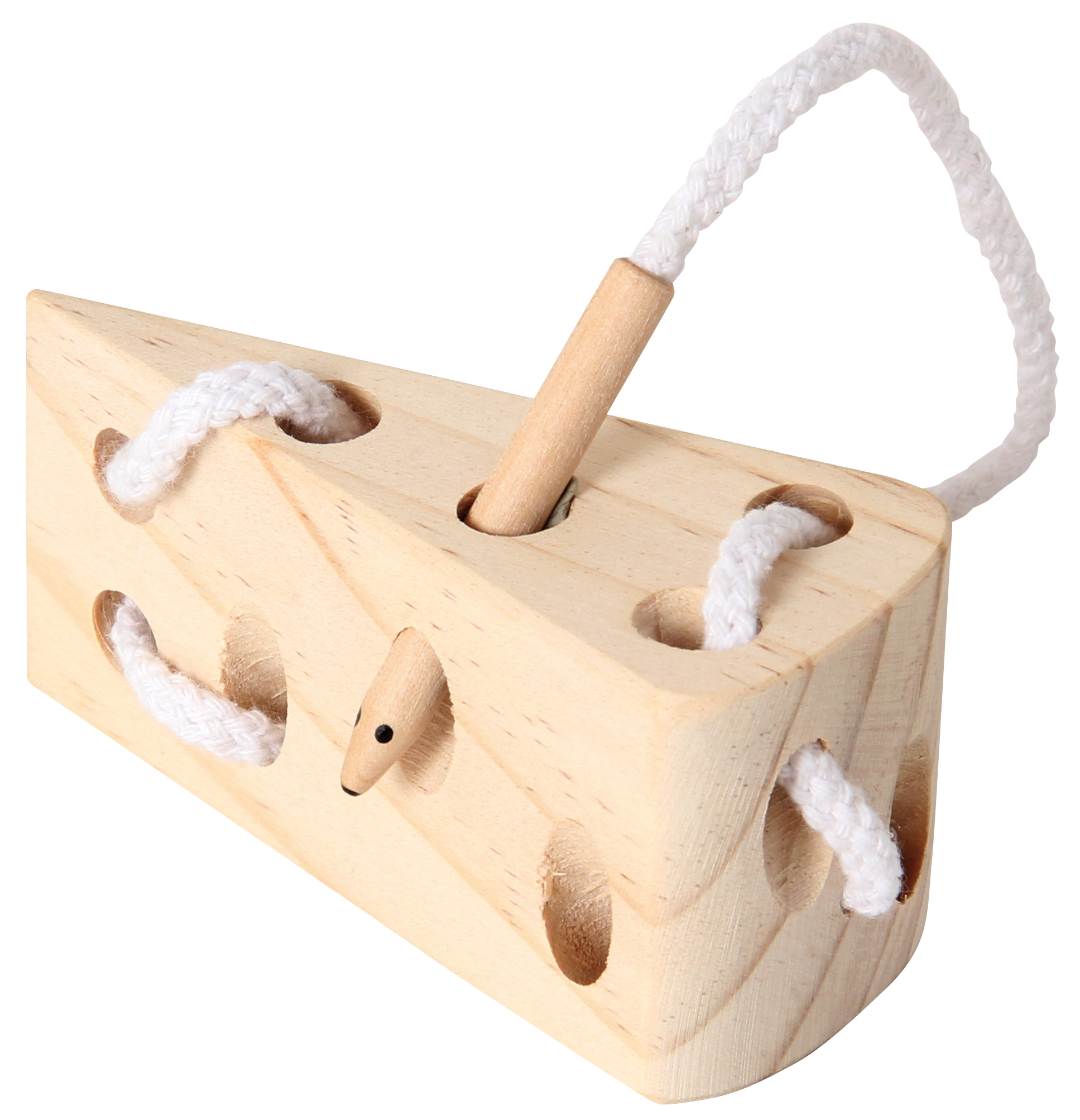 Geschicklichkeitsspiel aus Holz in originellem Design. Während die Maus durch die Käselöcher schlüpft, verwickelt sich ihr langer Schwanz immer mehr. Hilf ihr, sich wieder zu befreien. Das macht Spaß und fördert die Feinmotorik.